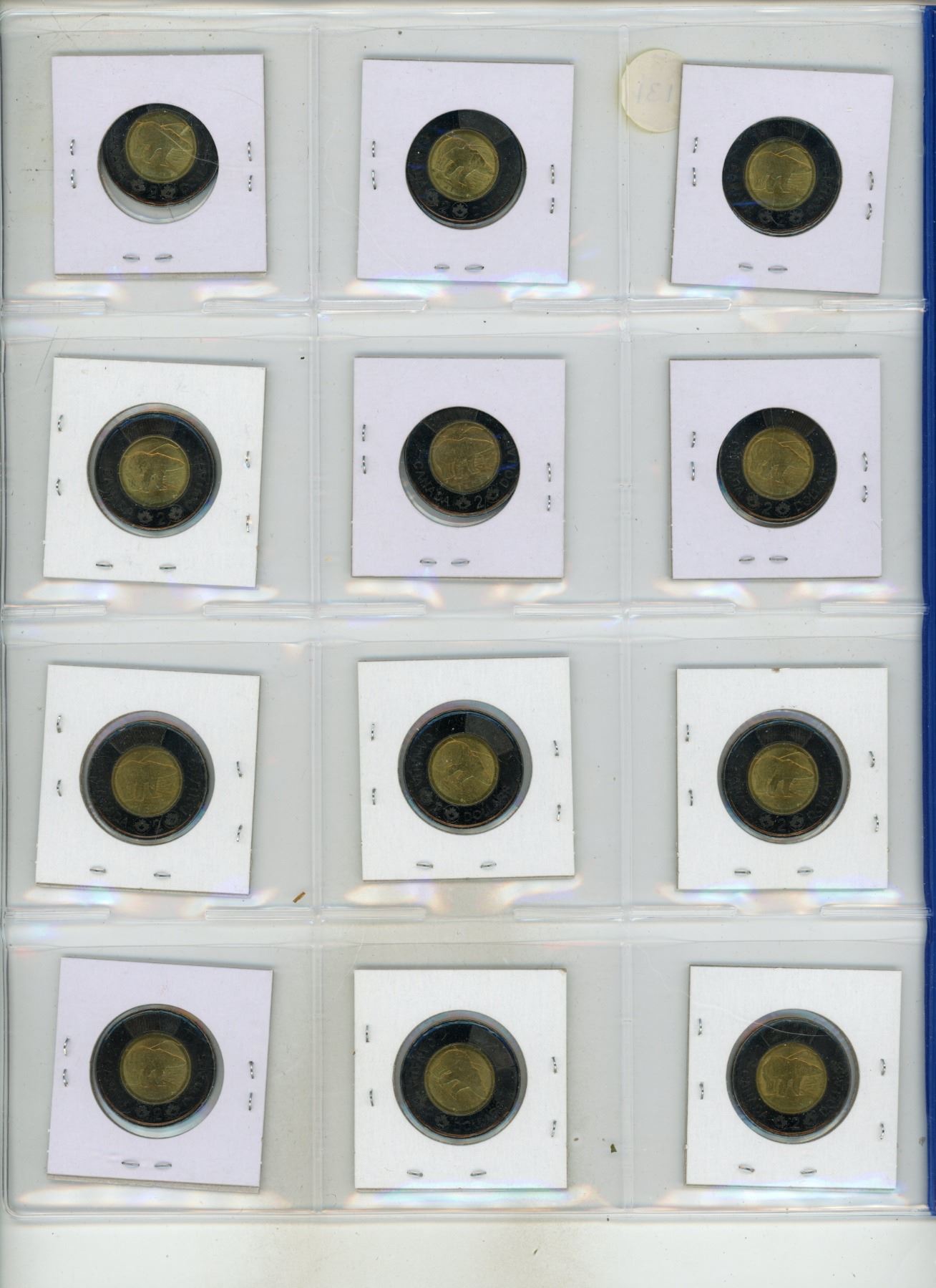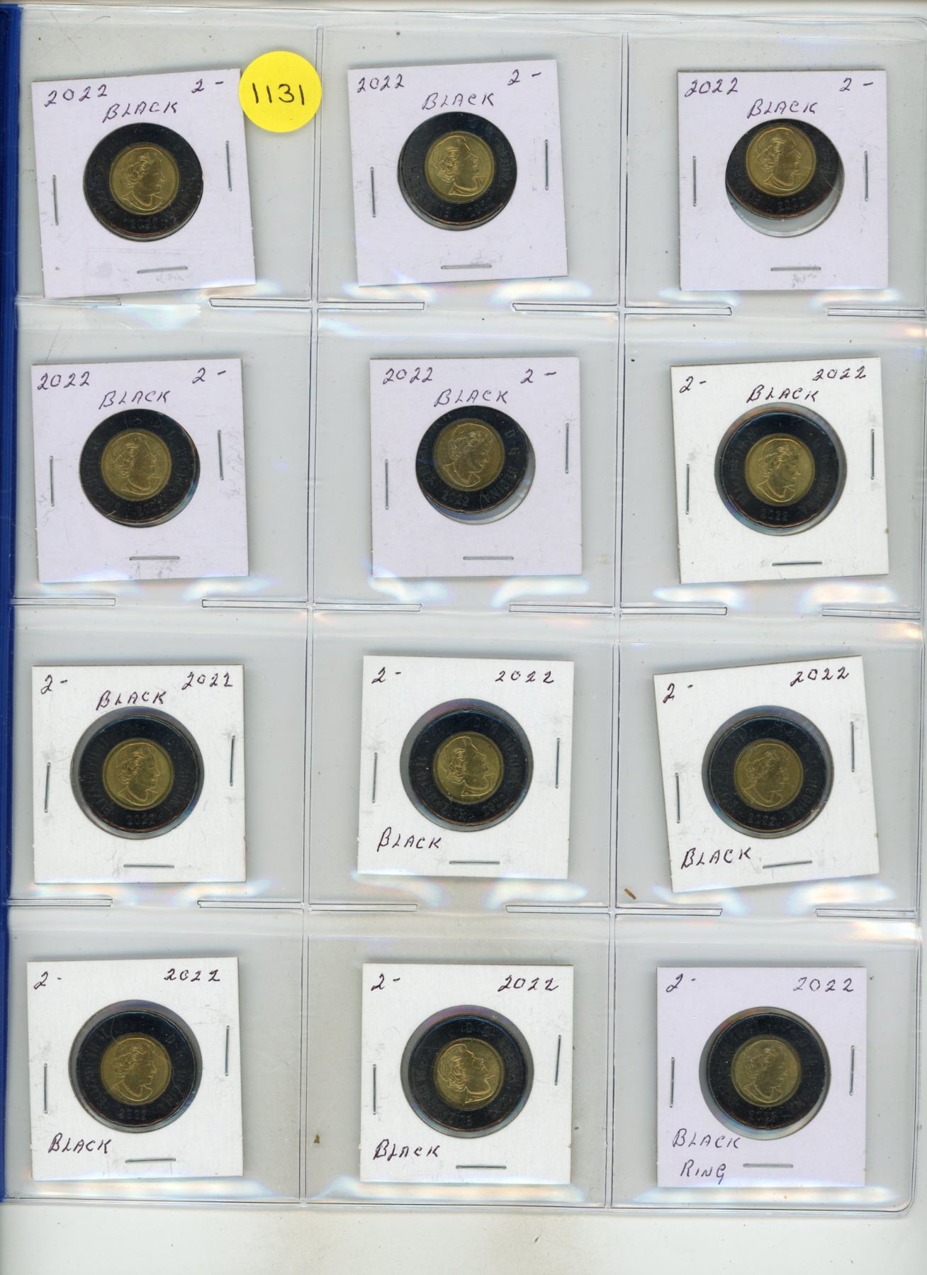 Sheet of 2022 Two Dollars. (Black Toonie) - Total 12 Coins.