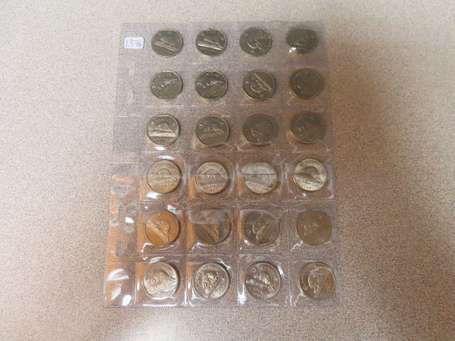 Sheet of Canadian 5 Cent Coins; 1961-1964