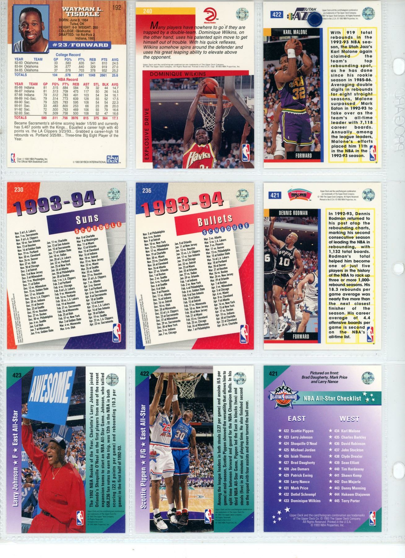 Sheet of NBA Sports Cards (1993 Upper Decker Cards)