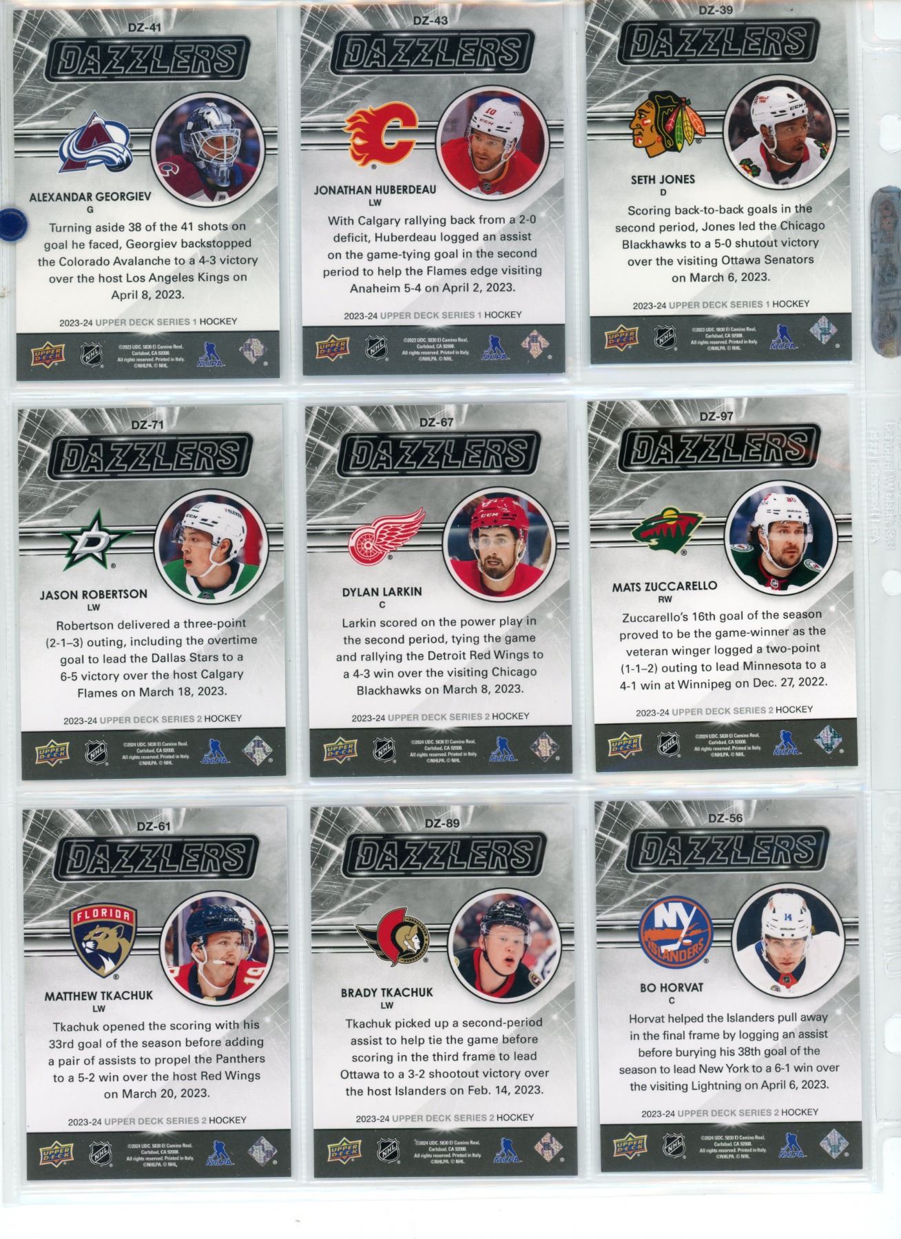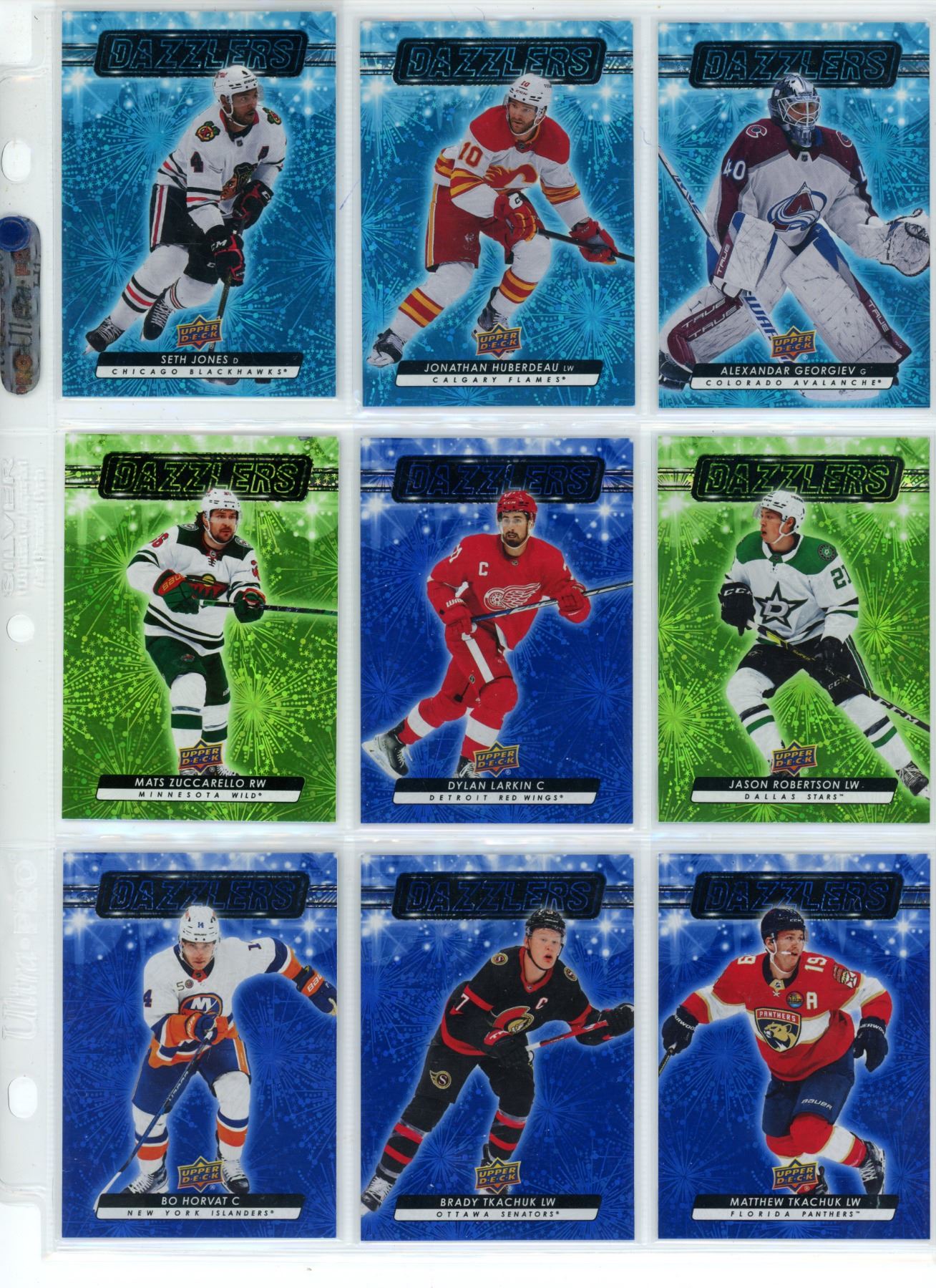 Sheet of NHL Dazzlers Upper Decker Sport Cards