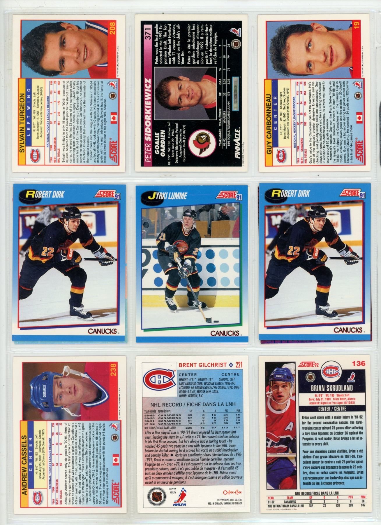 Sheet of NHL Sports Cards (1991 Score 91' Cards)