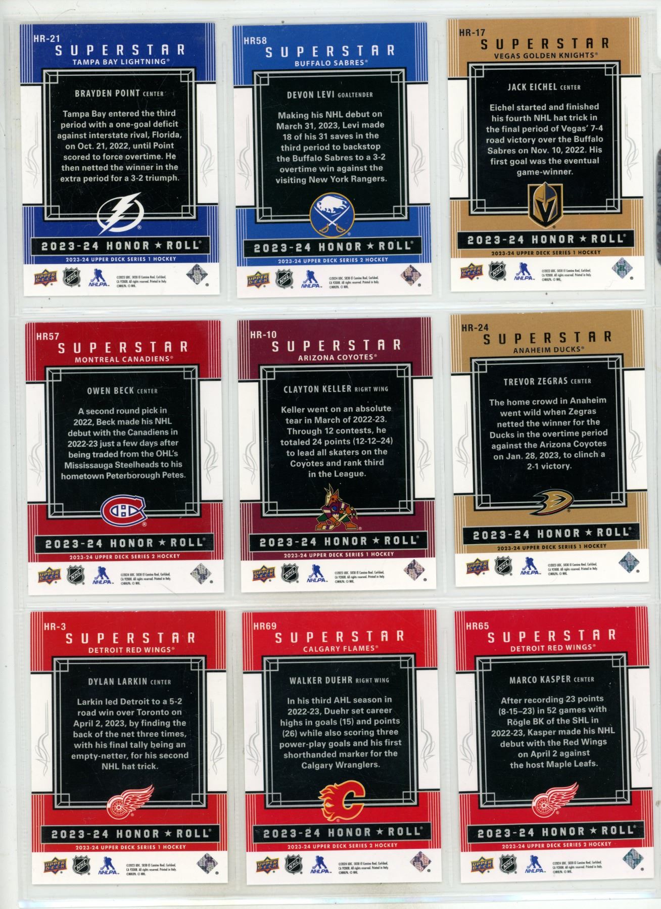 Sheet of NHL Sports Cards (Upper Decker 2023-24 Superstar Cards)