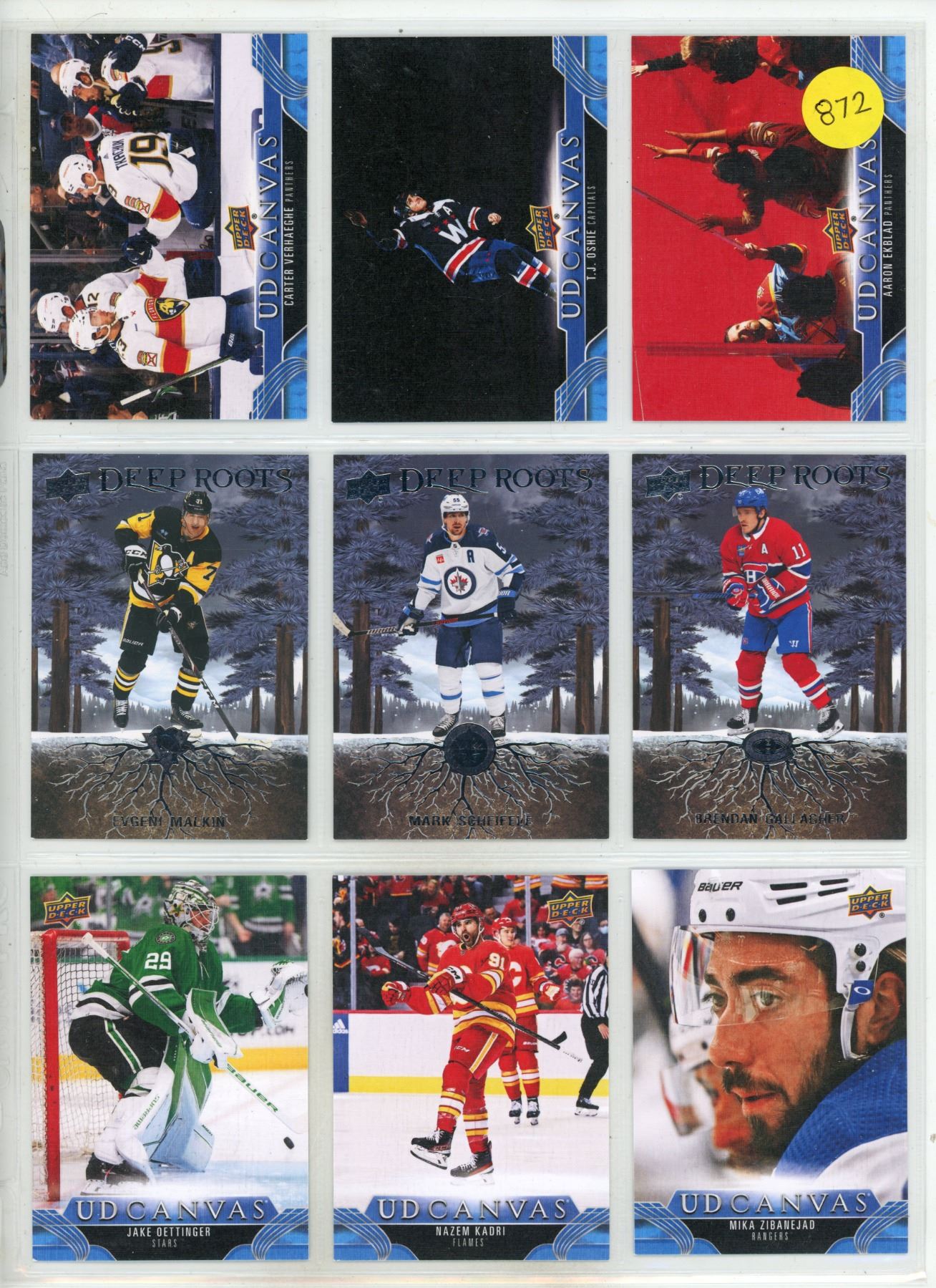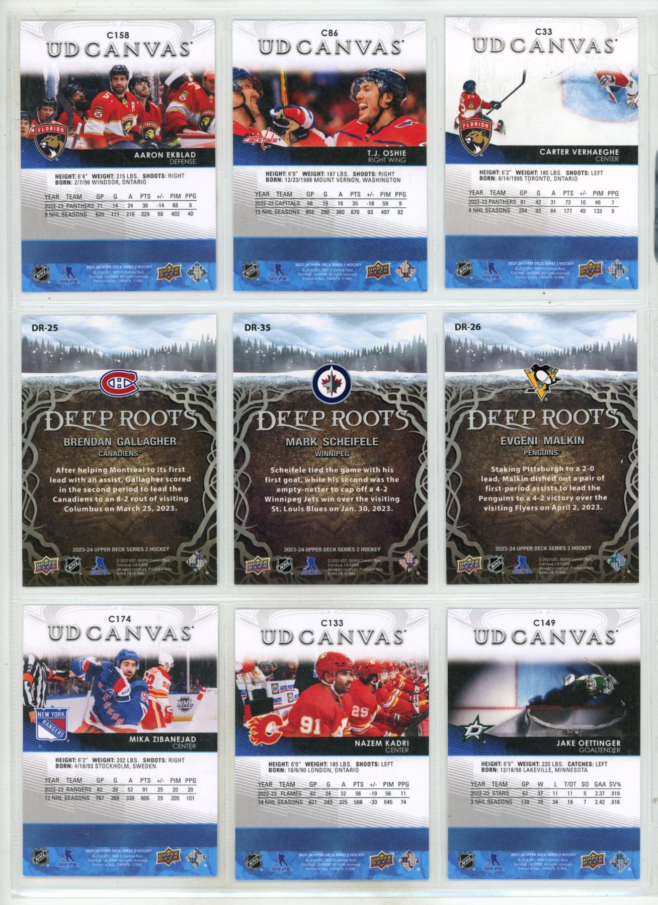 Sheet of NHL Sports Cards (Upper Decker Deep Roots Card Series/UD Canvas Upper Decker Cards)
