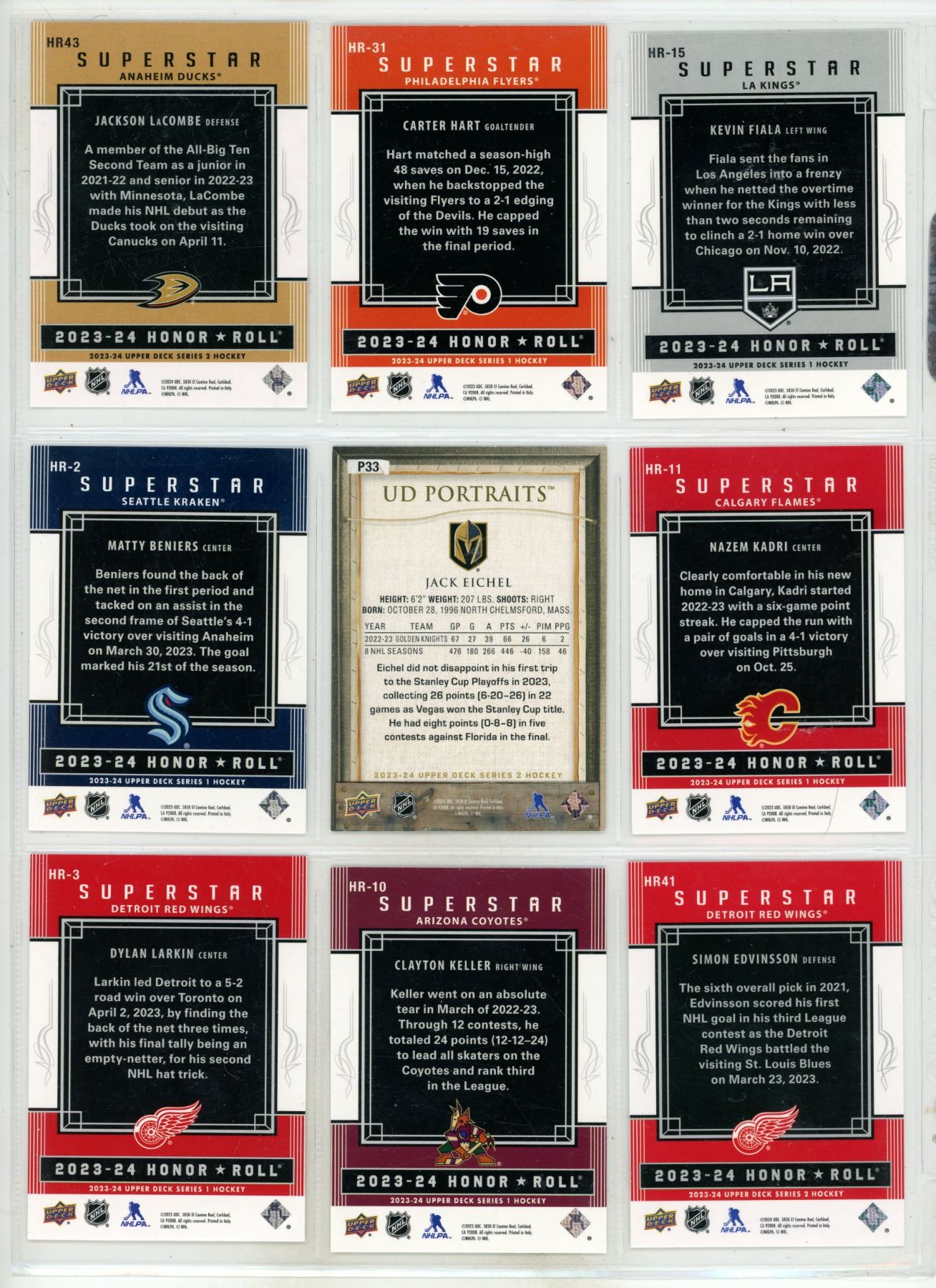Sheet of NHL Sports Cards (Various Upper Decker, Portraits, Superstar, etc.)