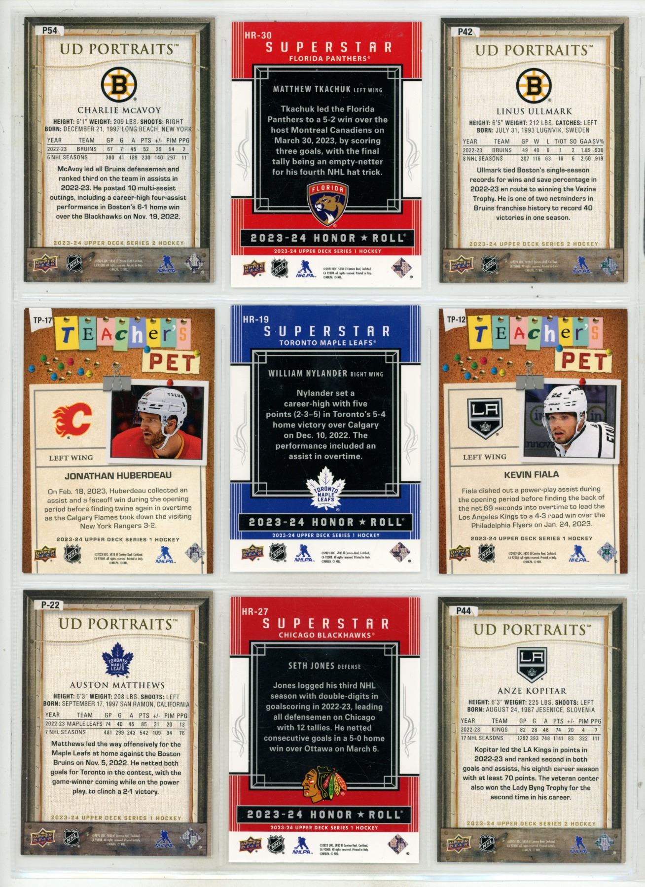 Sheet of NHL Sports Cards (Various Upper Decker, Portraits, teachers Pet, etc.)