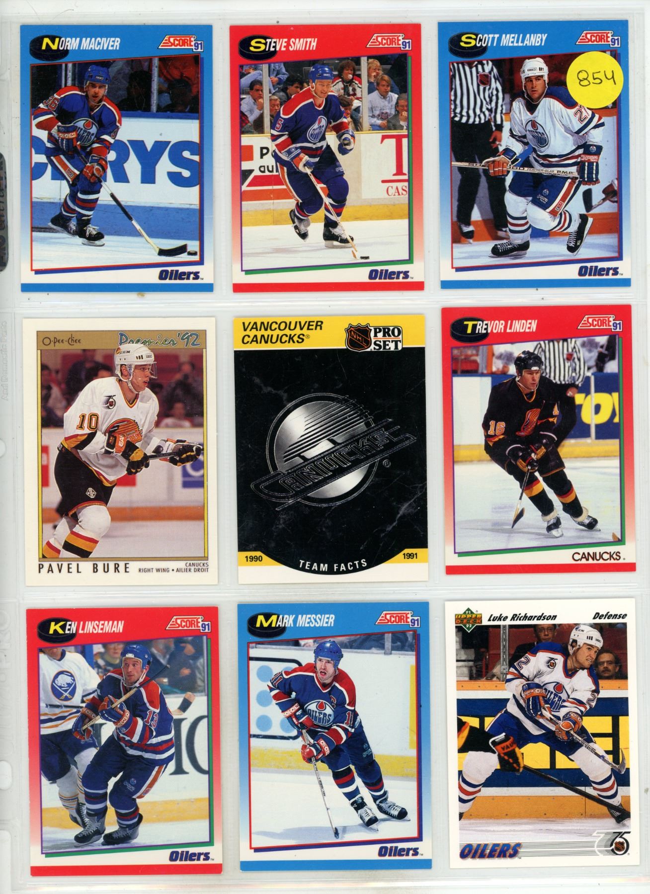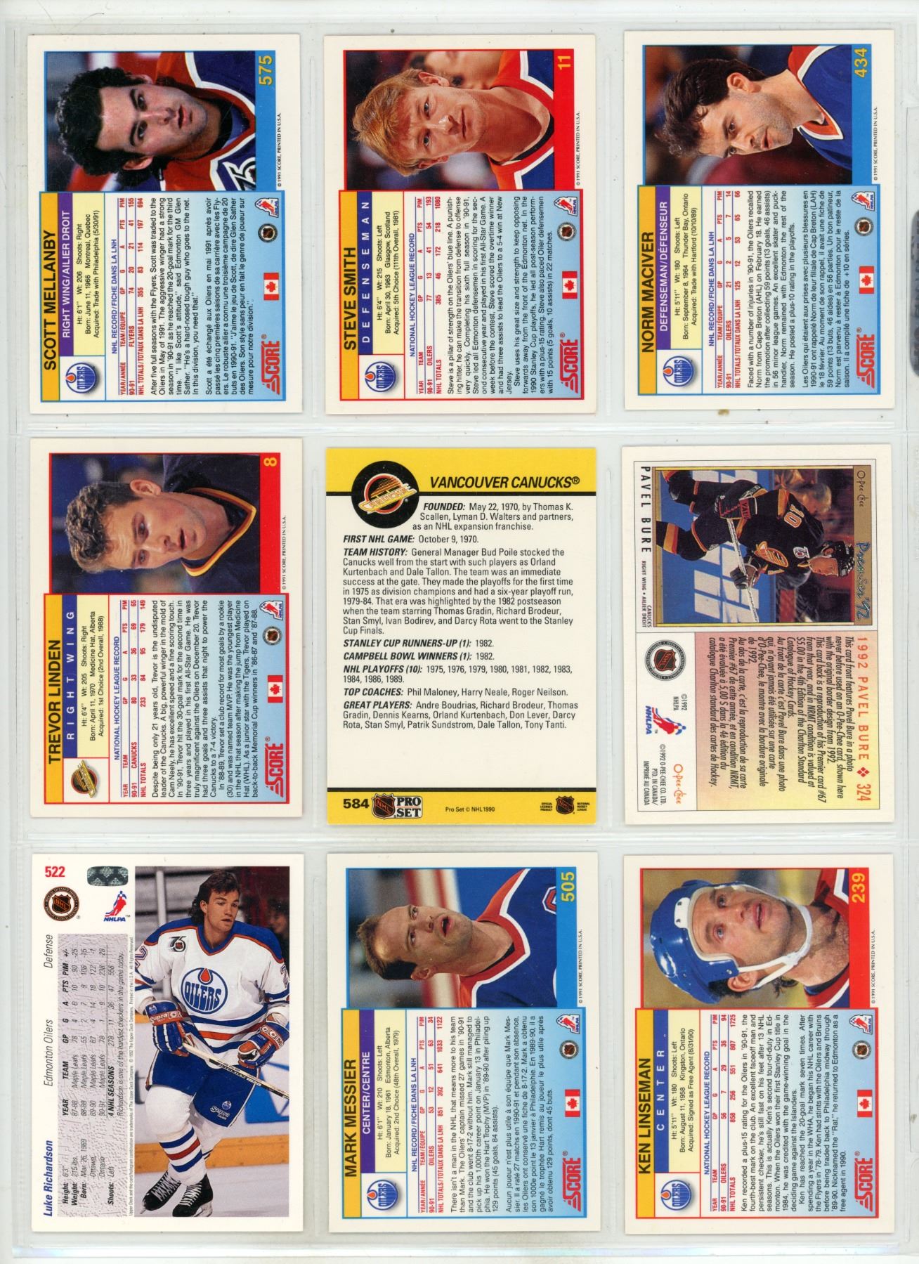 Sheet of NHL Sports Cards (Various from 1990s)
