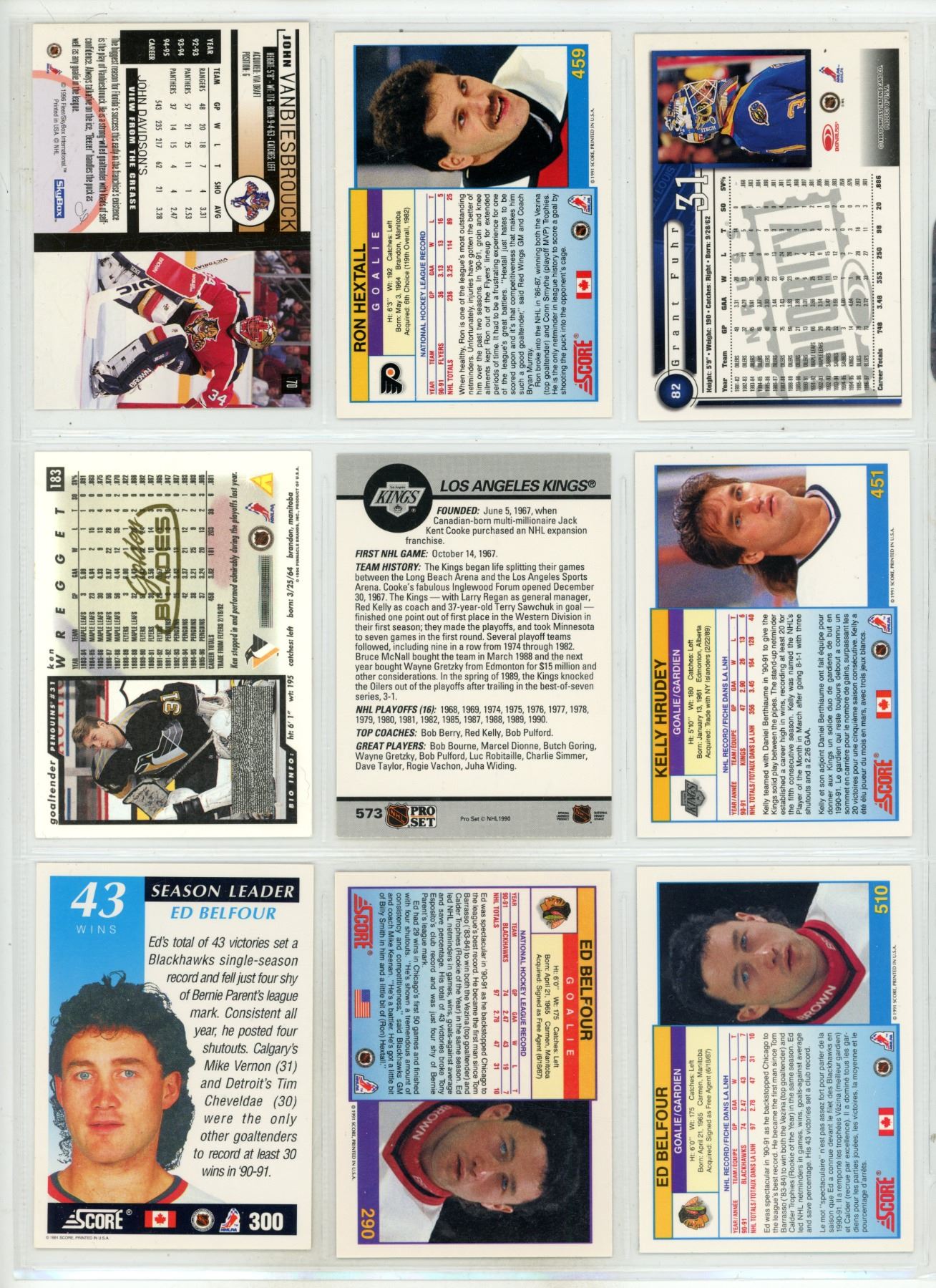 Sheet of NHL Sports Cards (Various from 1990s)