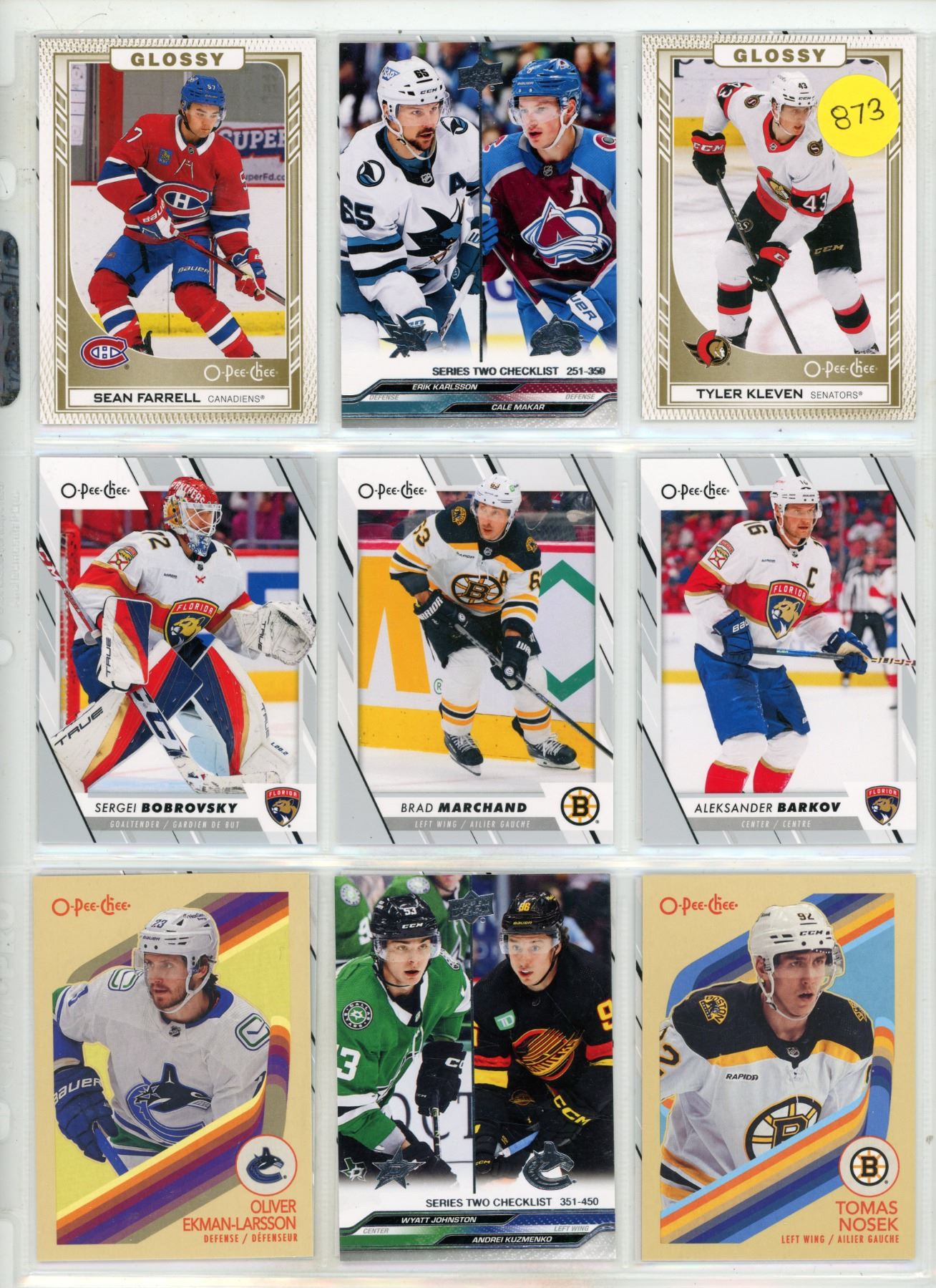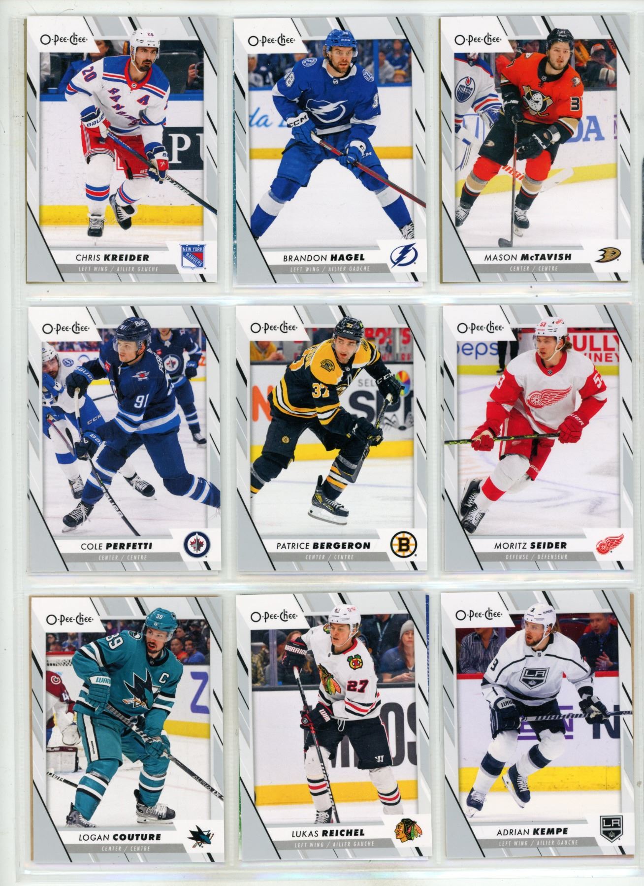 Sheet of NHL Sports cards (Upper Decker O-Pee-Chee Cards)