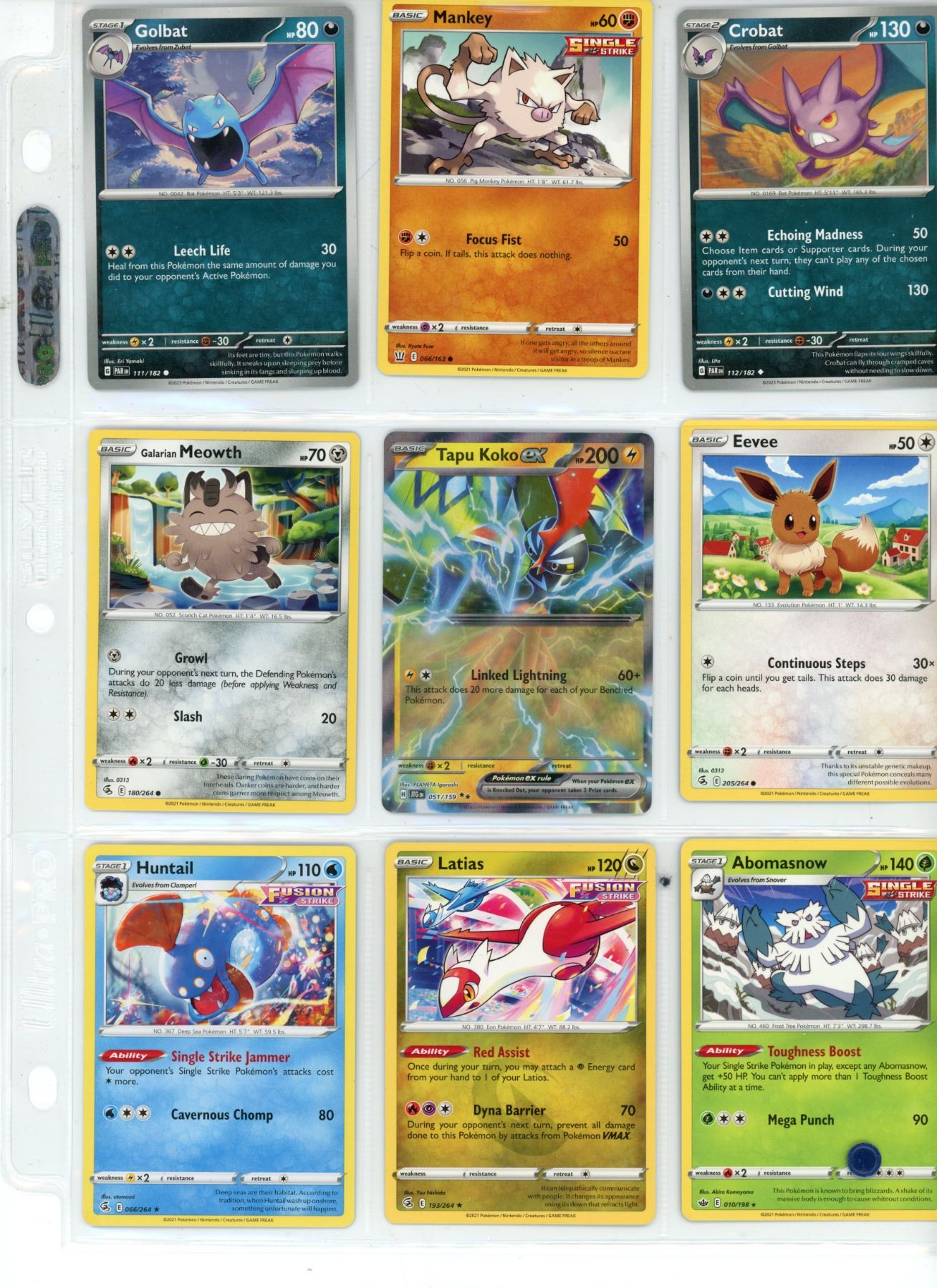 Sheet of Pokemon Cards (1) Holo Tapu Koko EX Card (2) Fusion Strike (2) Single Strike