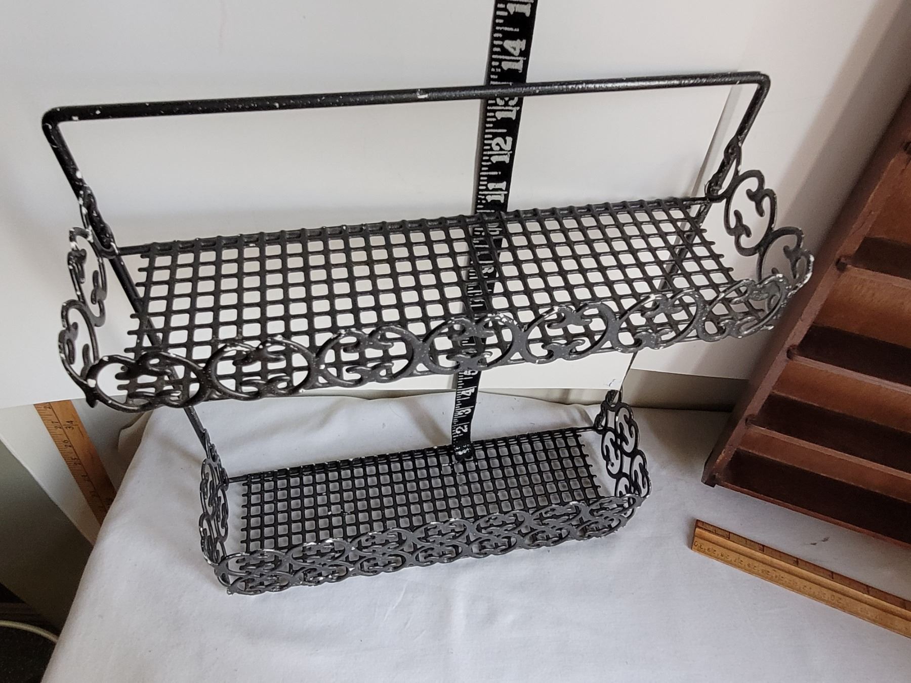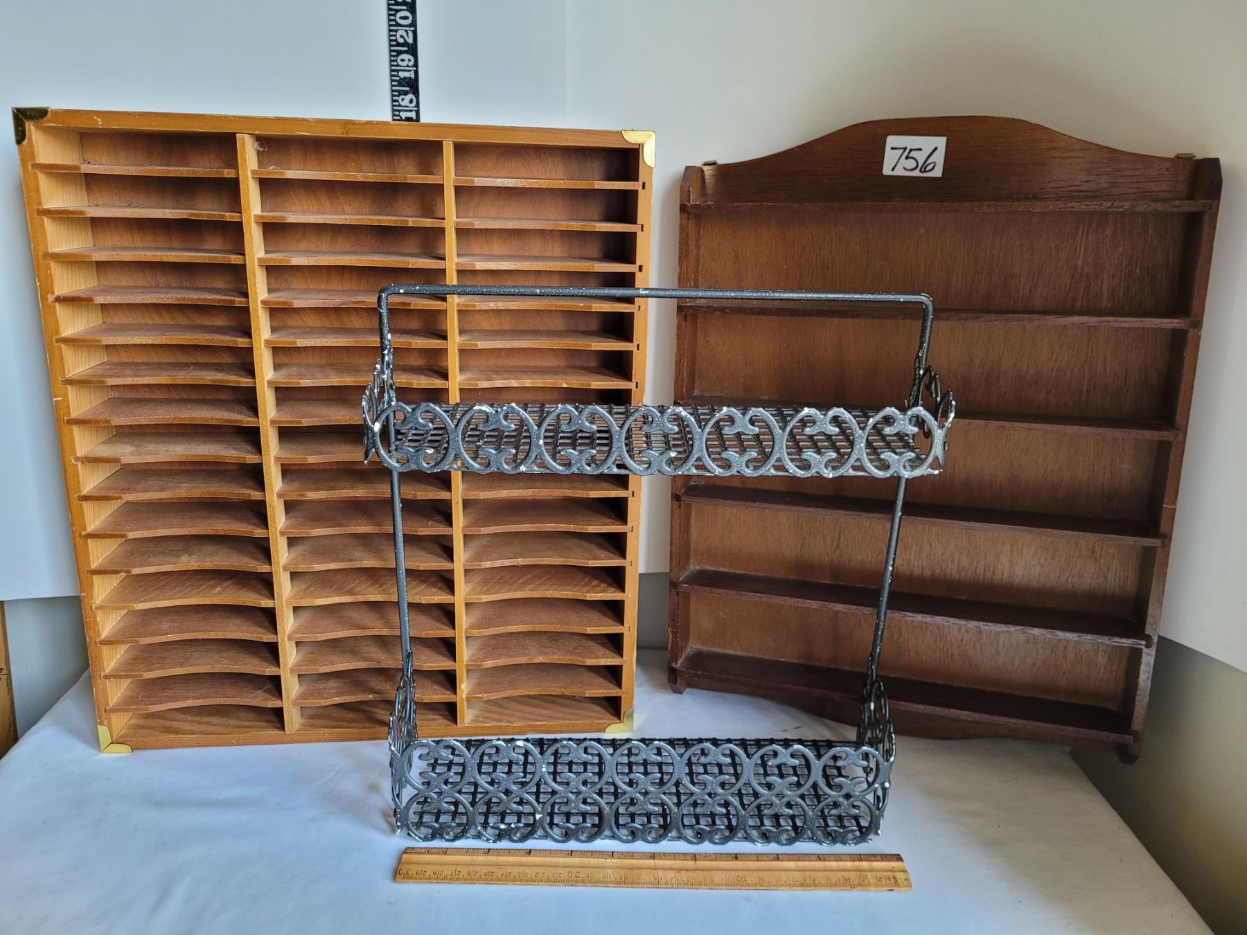 Shelves. 2 Wood.1 size changeable slots.Coated metal wall rack.