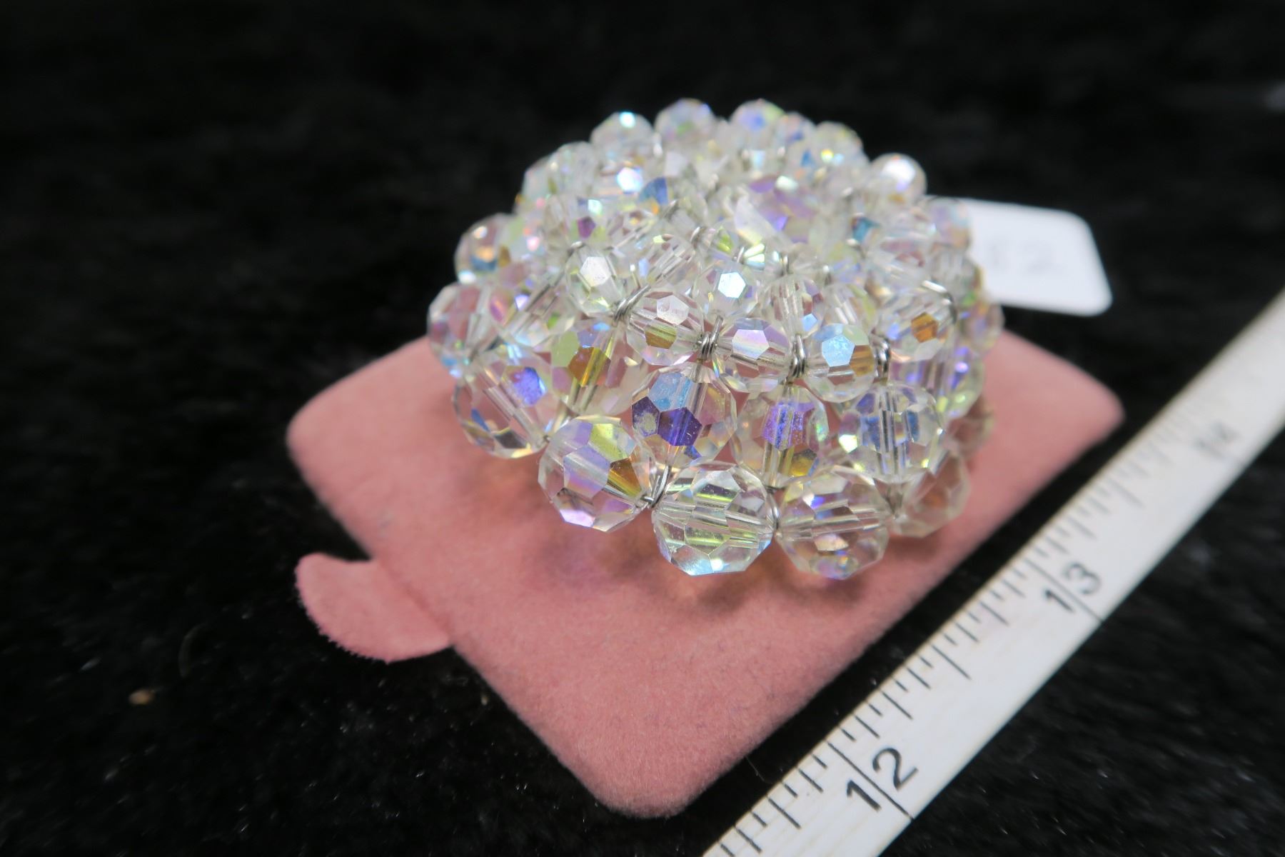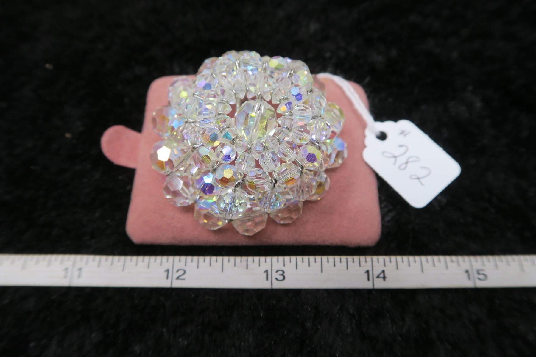 Sherman Crystal broach, 2” across, marked in rectangular cartouche
