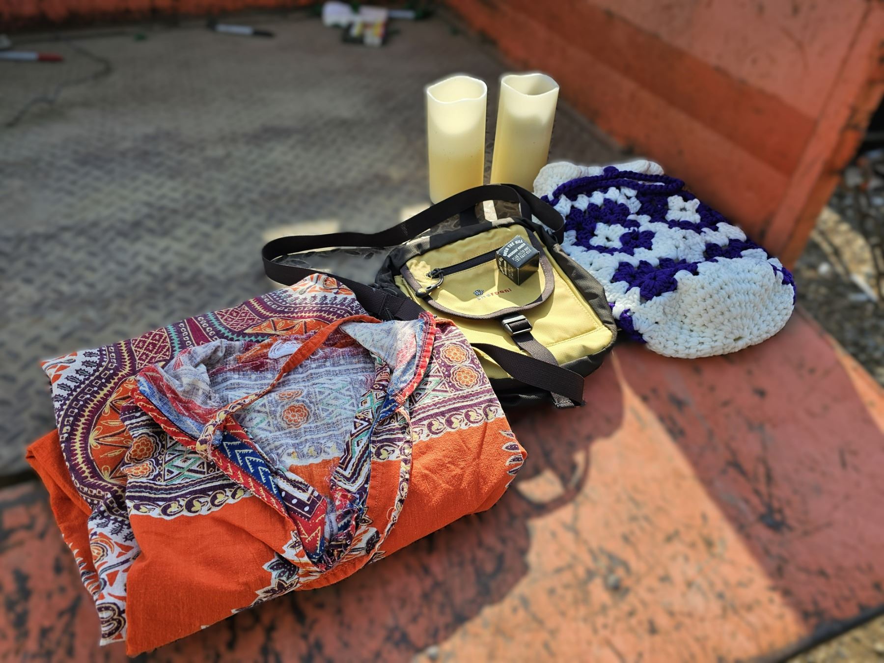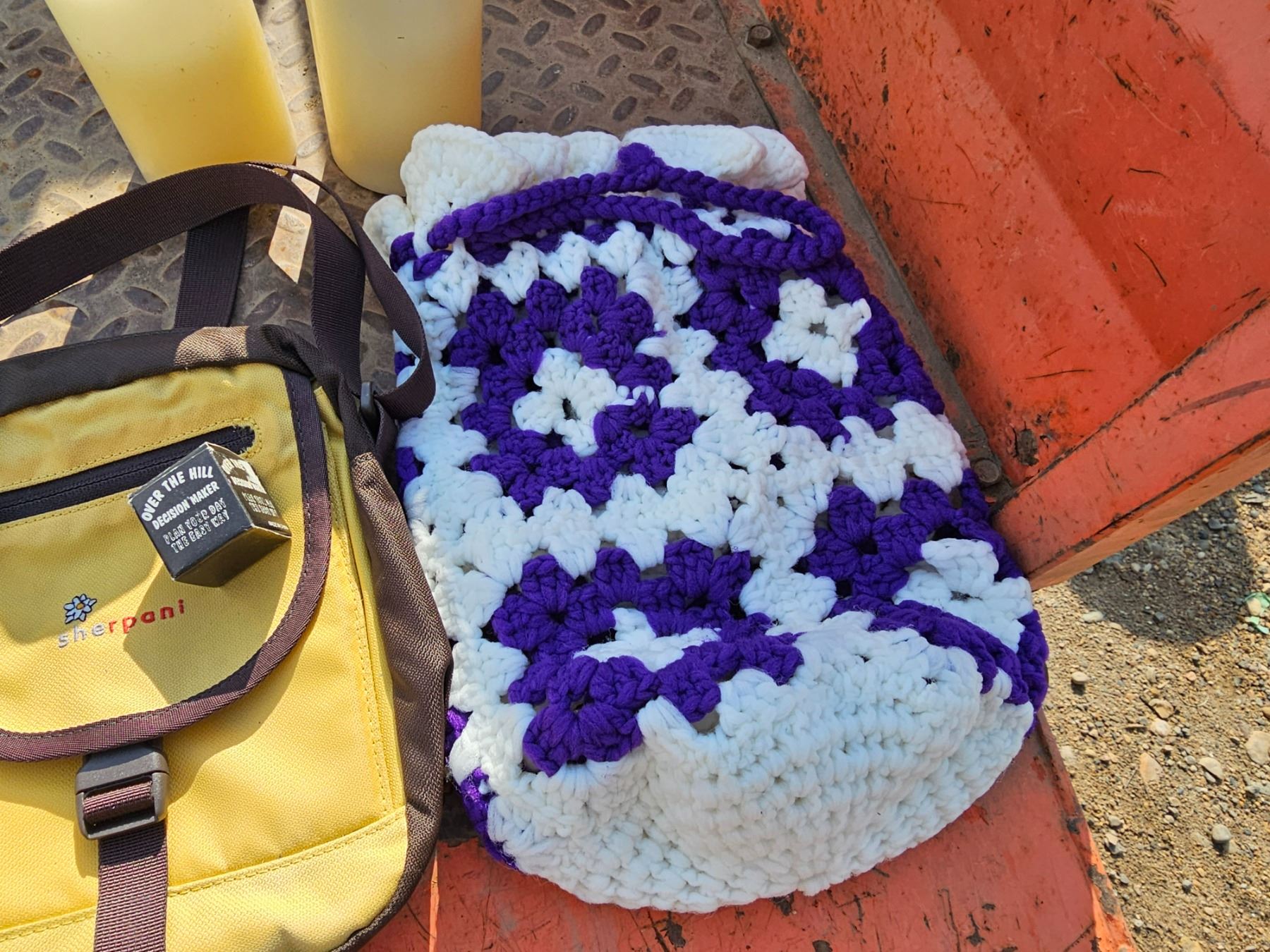 Sherpani Purse/Crochet Bag/Mexican Dress/Battery Operated Candles/Over The Hill Dice