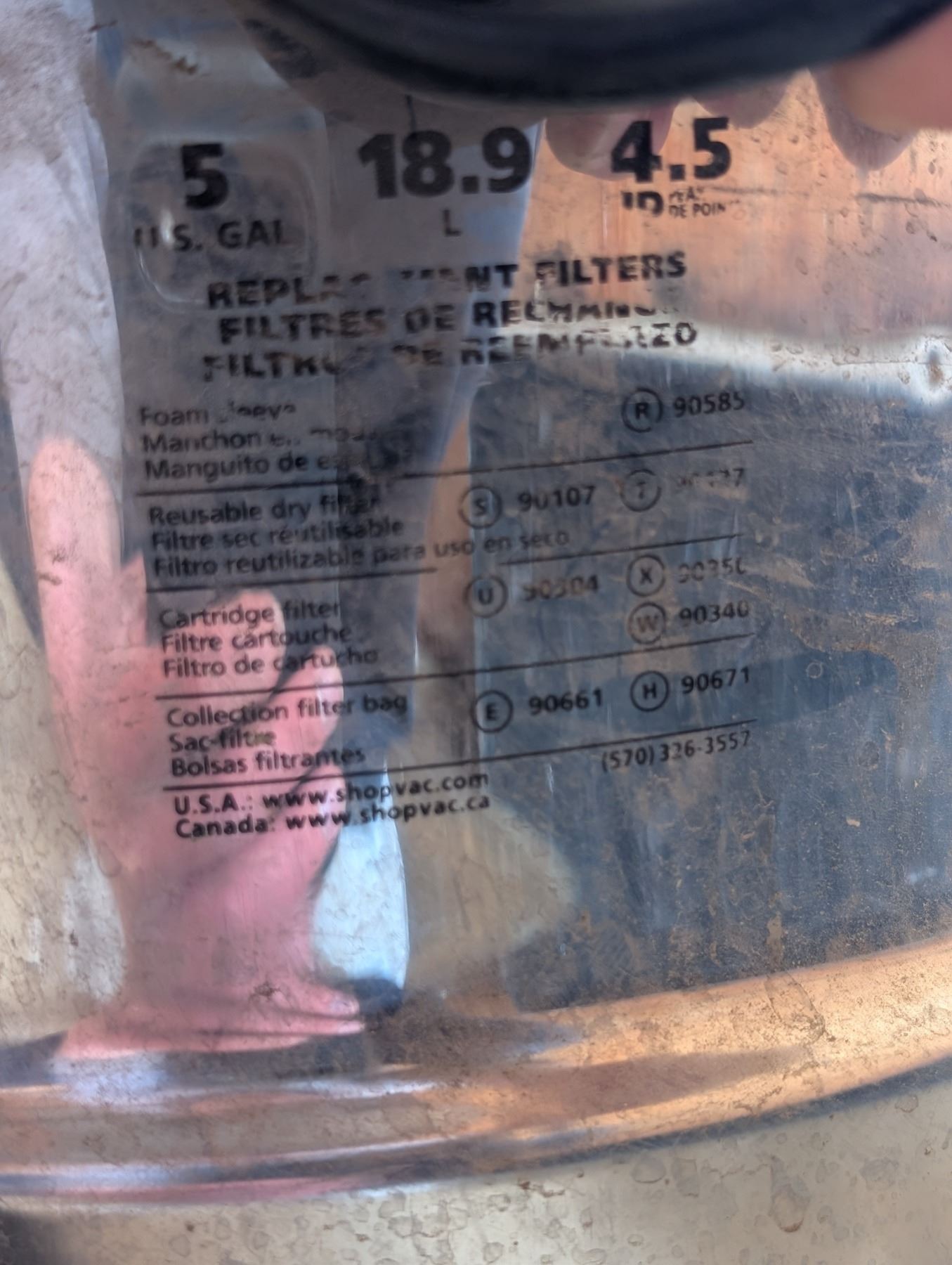 Shop.Vac 18.9L Mod:SS11-450 (Works)