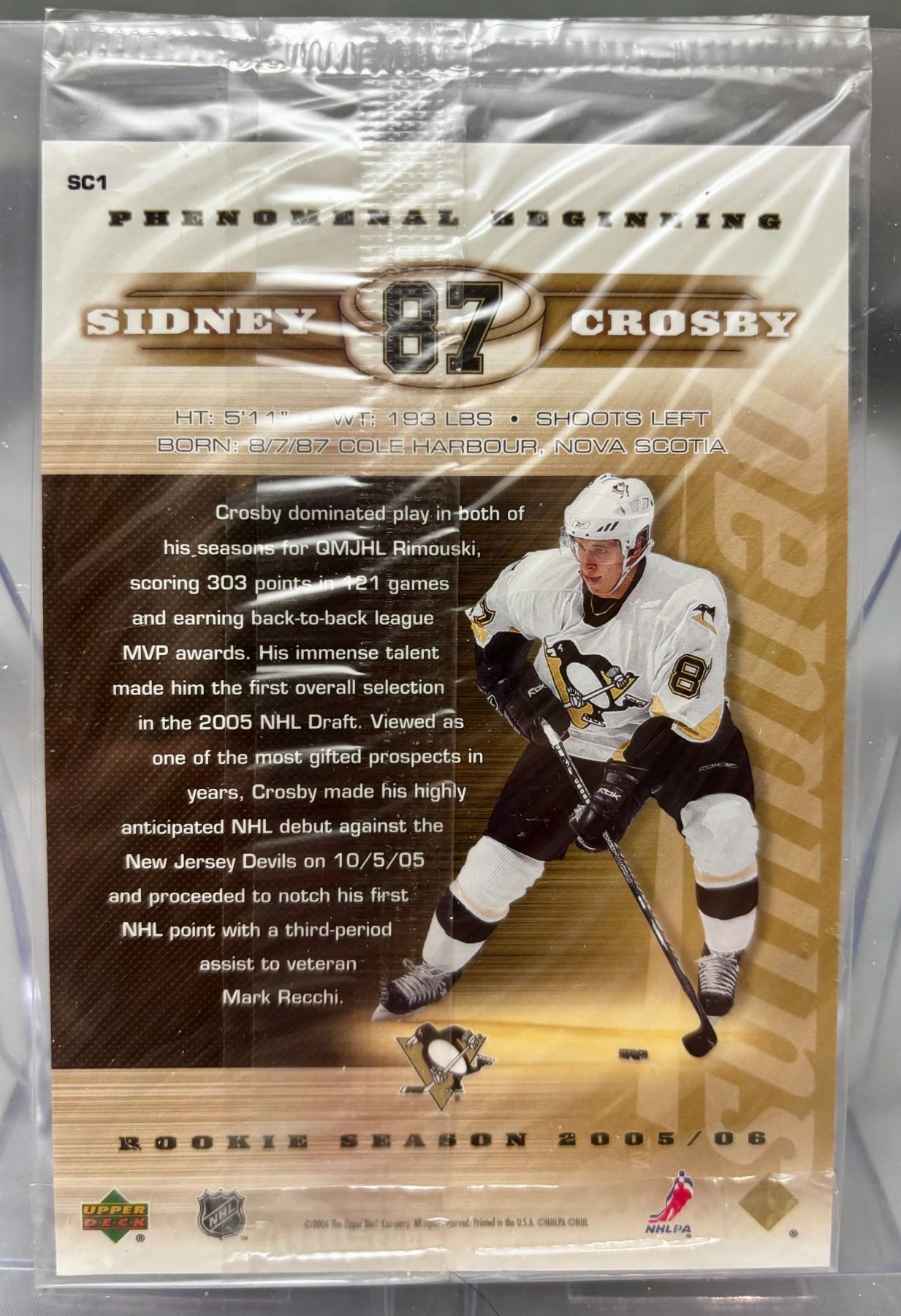 Sidney Crosby RC Phenom Beginnings Jumbo Rookie Card in Top Loader & Sealed