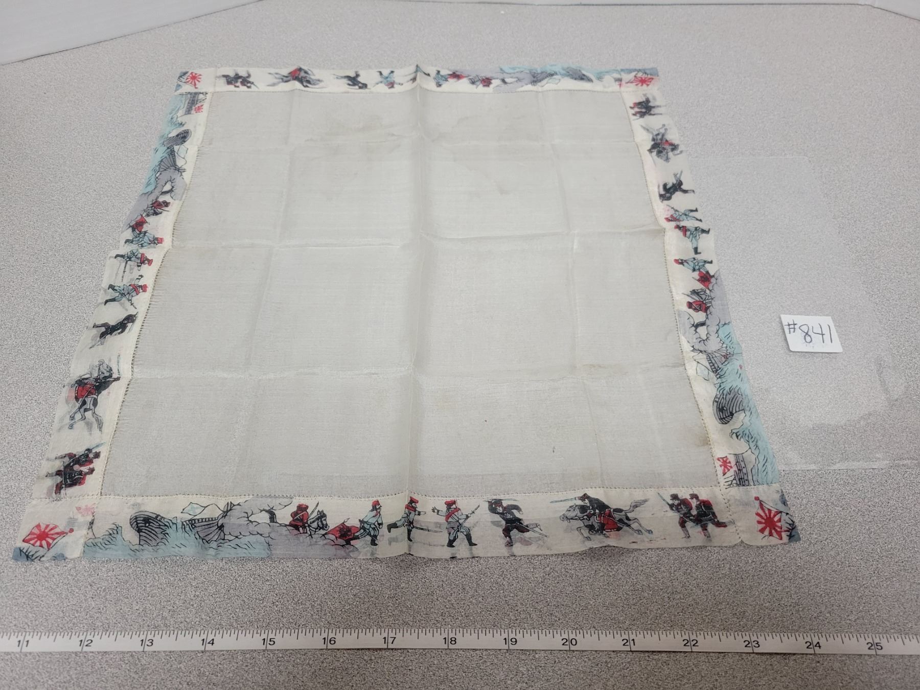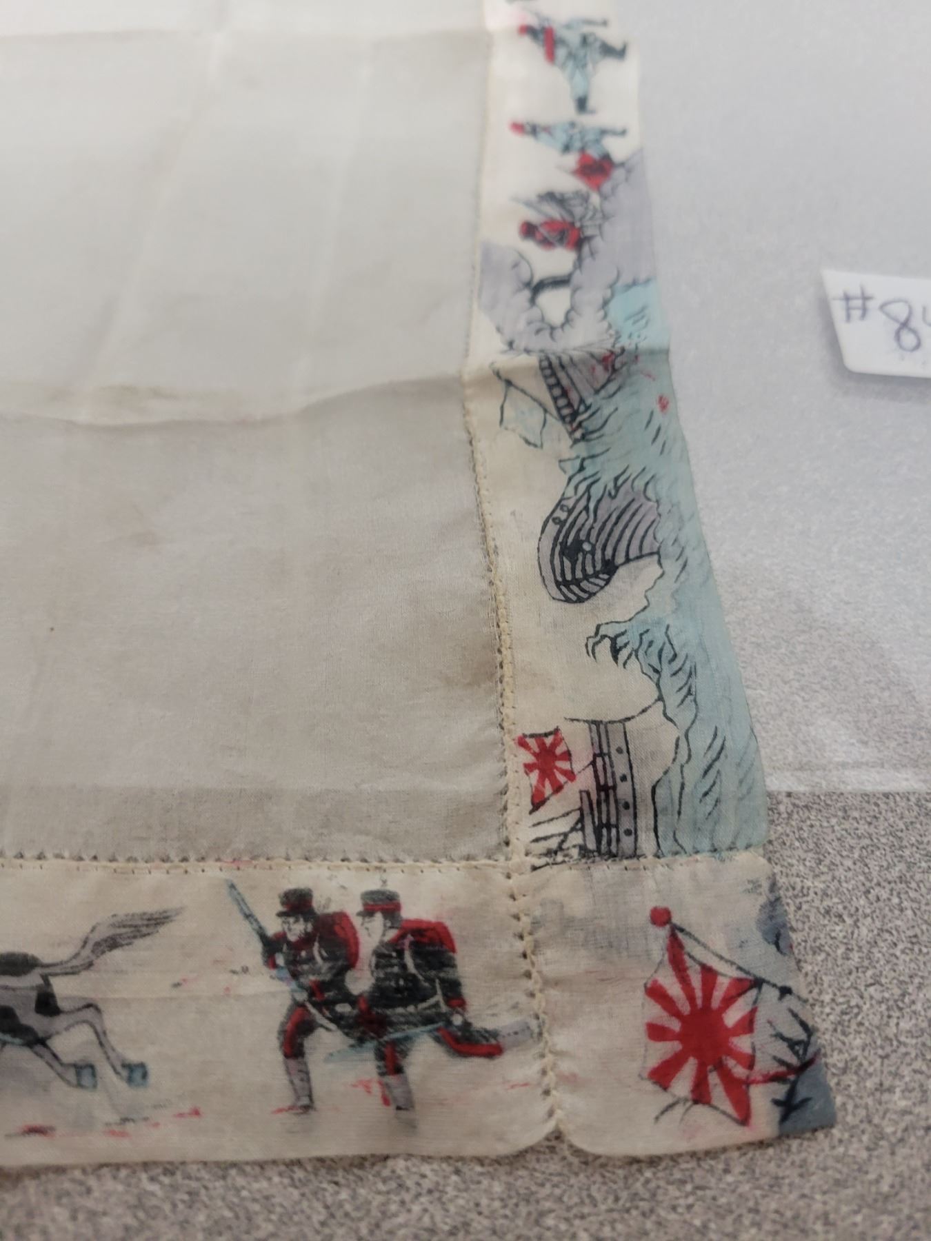 Silk hanky bordered with scenes from the Sino-Japanese war, circa 1905