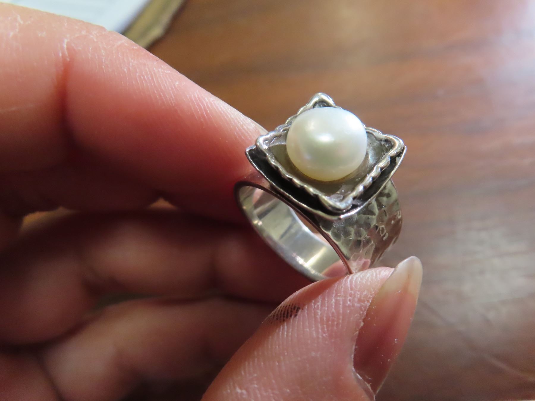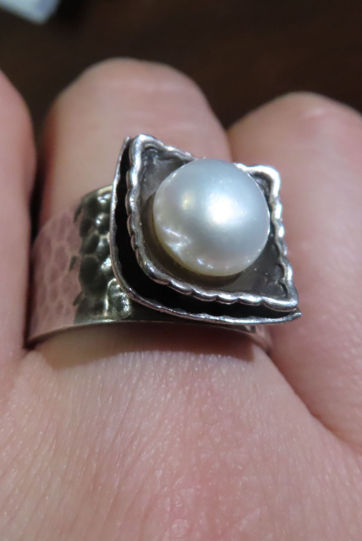 Silpada hammered sterling silver freshwater pearl ring -size 6.75