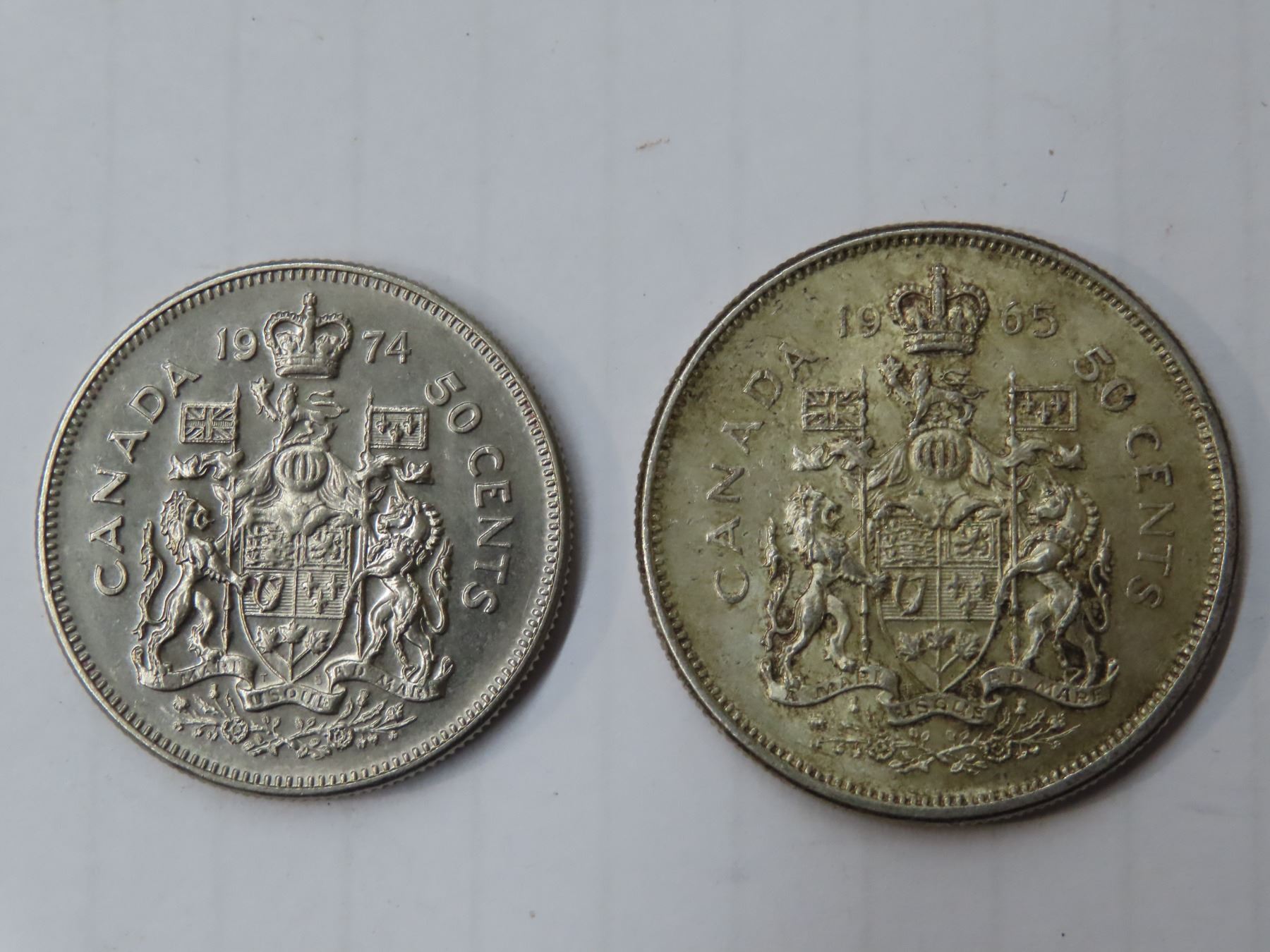 Silver 1965 Canada 50 cent coin & 1974 Canada 50 cent coin