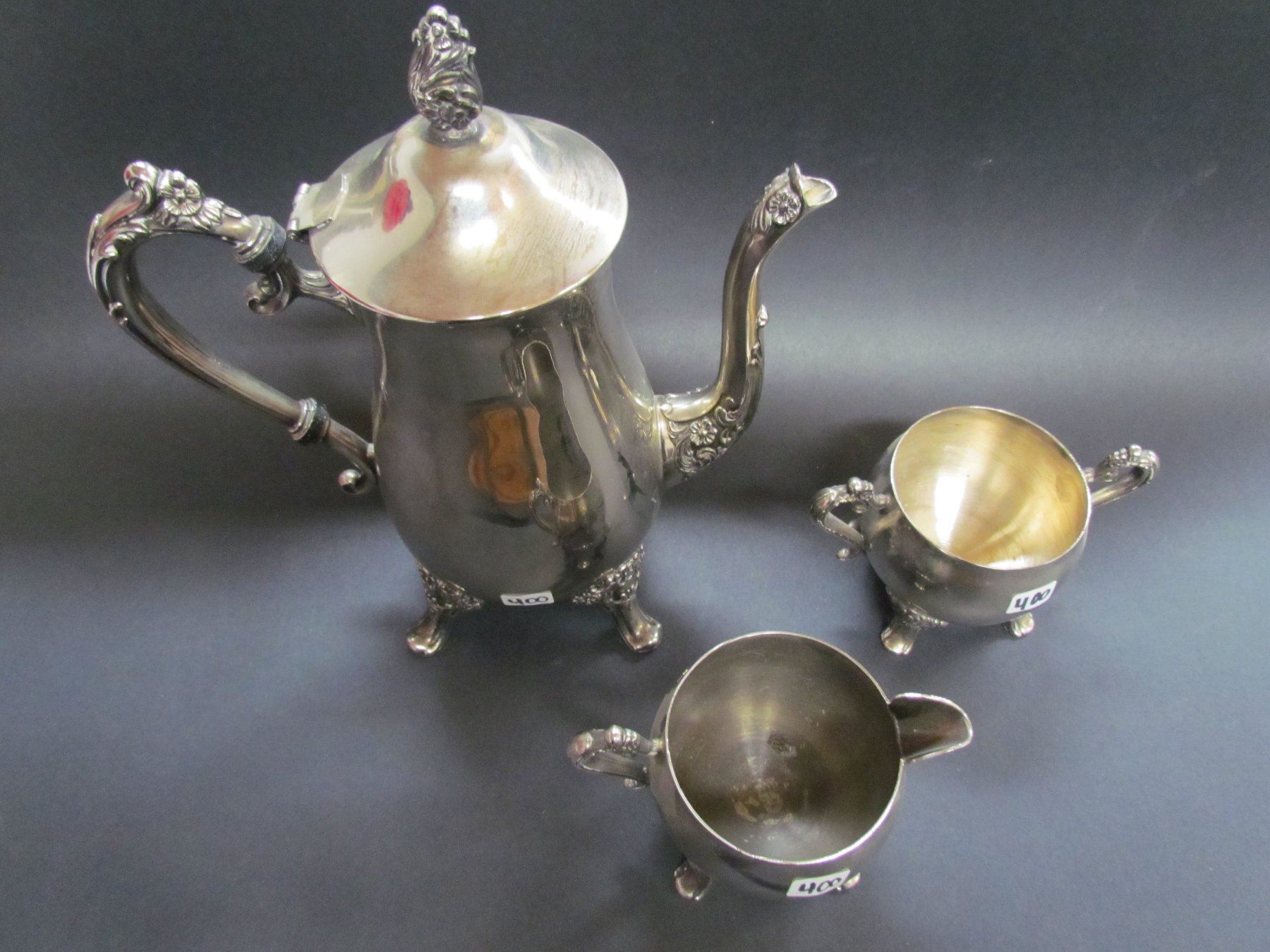 Silver Elegance plated E.D. Brass tea set (sugar,cream,pot)