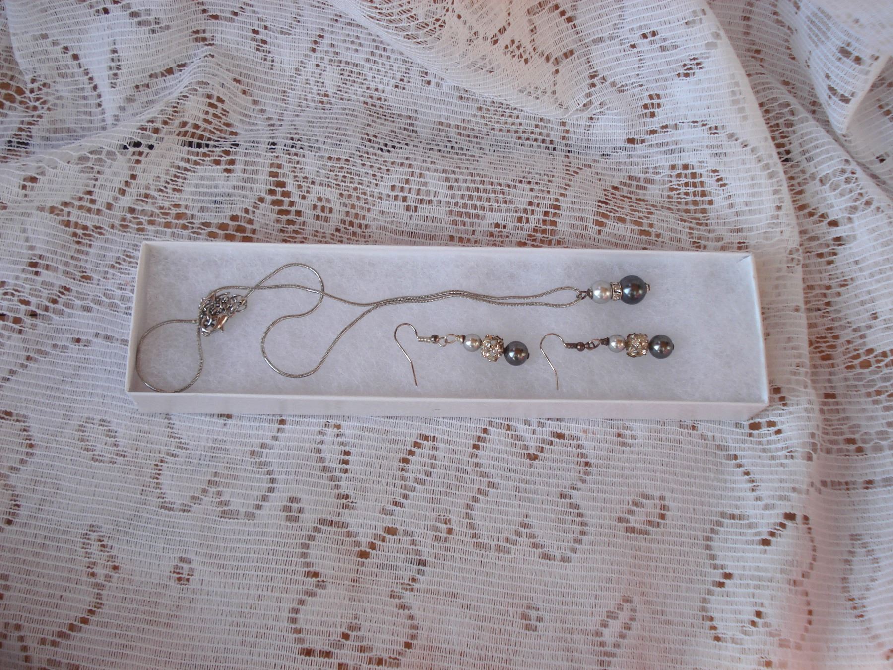 Silver-Grey Faux Pearl Necklace and Earring Set