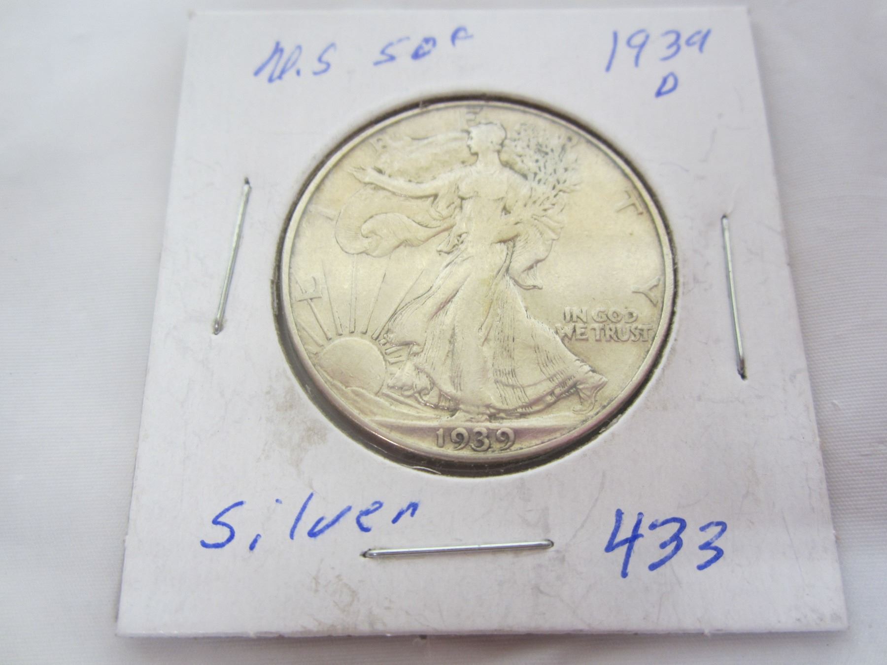 Silver Liberty Walking 1939 D Fifty Cent Piece