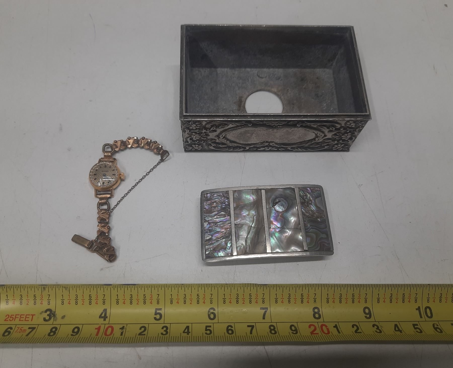 Silver Plated Box, Belt Buckle and Sekonda Watch.