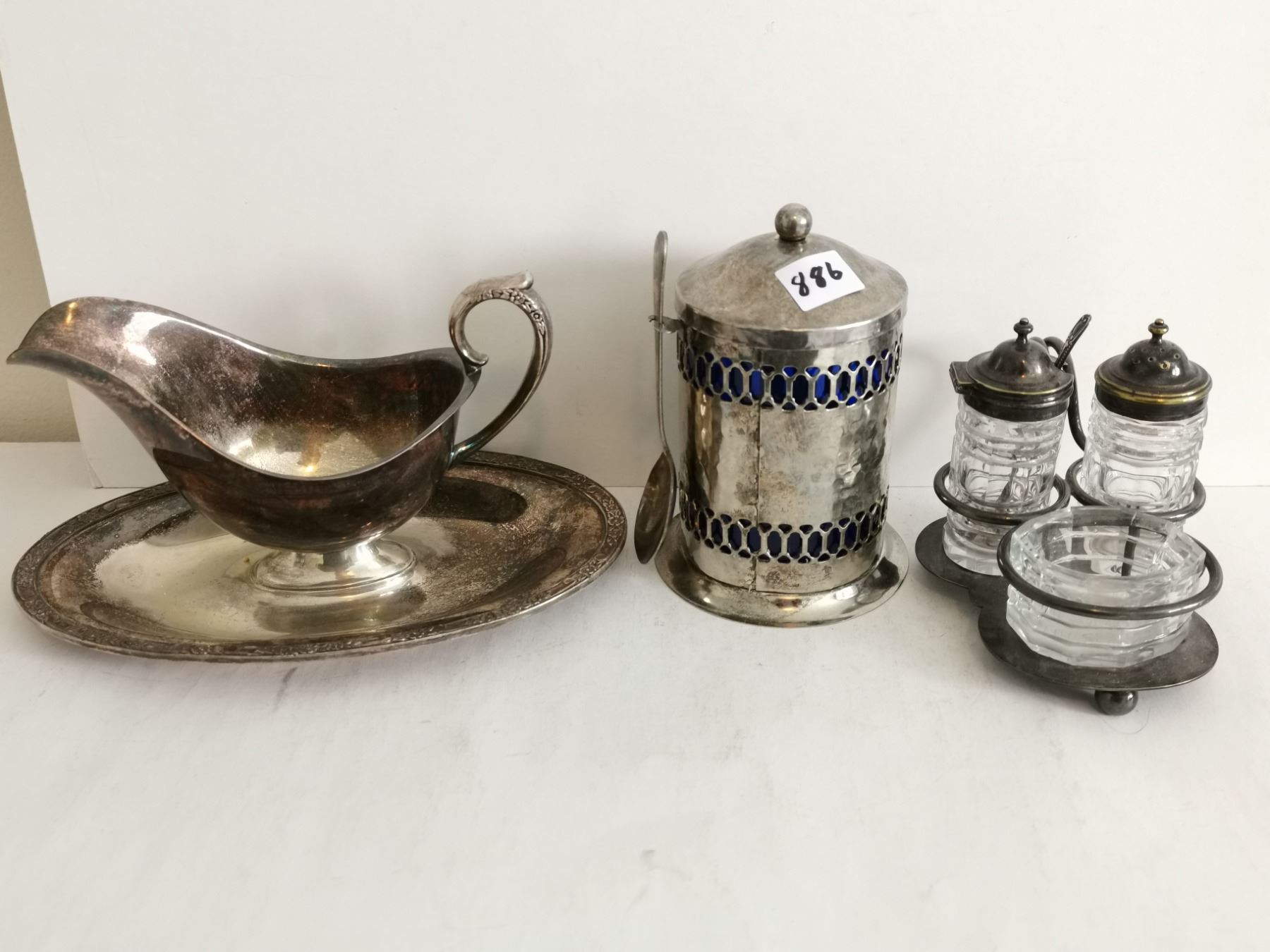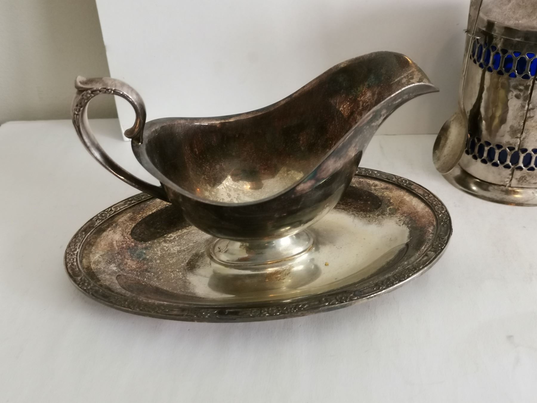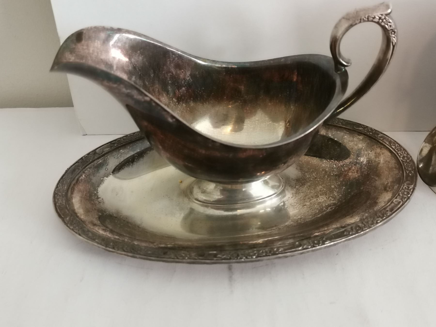 Silver Plated Coffee Holder, Gravy Boat, S&P Shaker Set