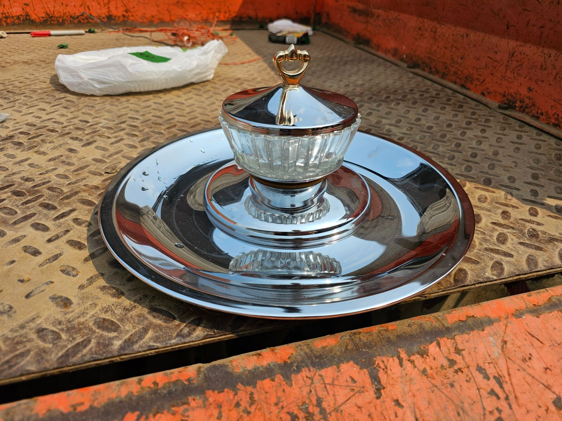 Silver Tiered Serving Tray w/ Base & Glass Dip Bowl & Lid