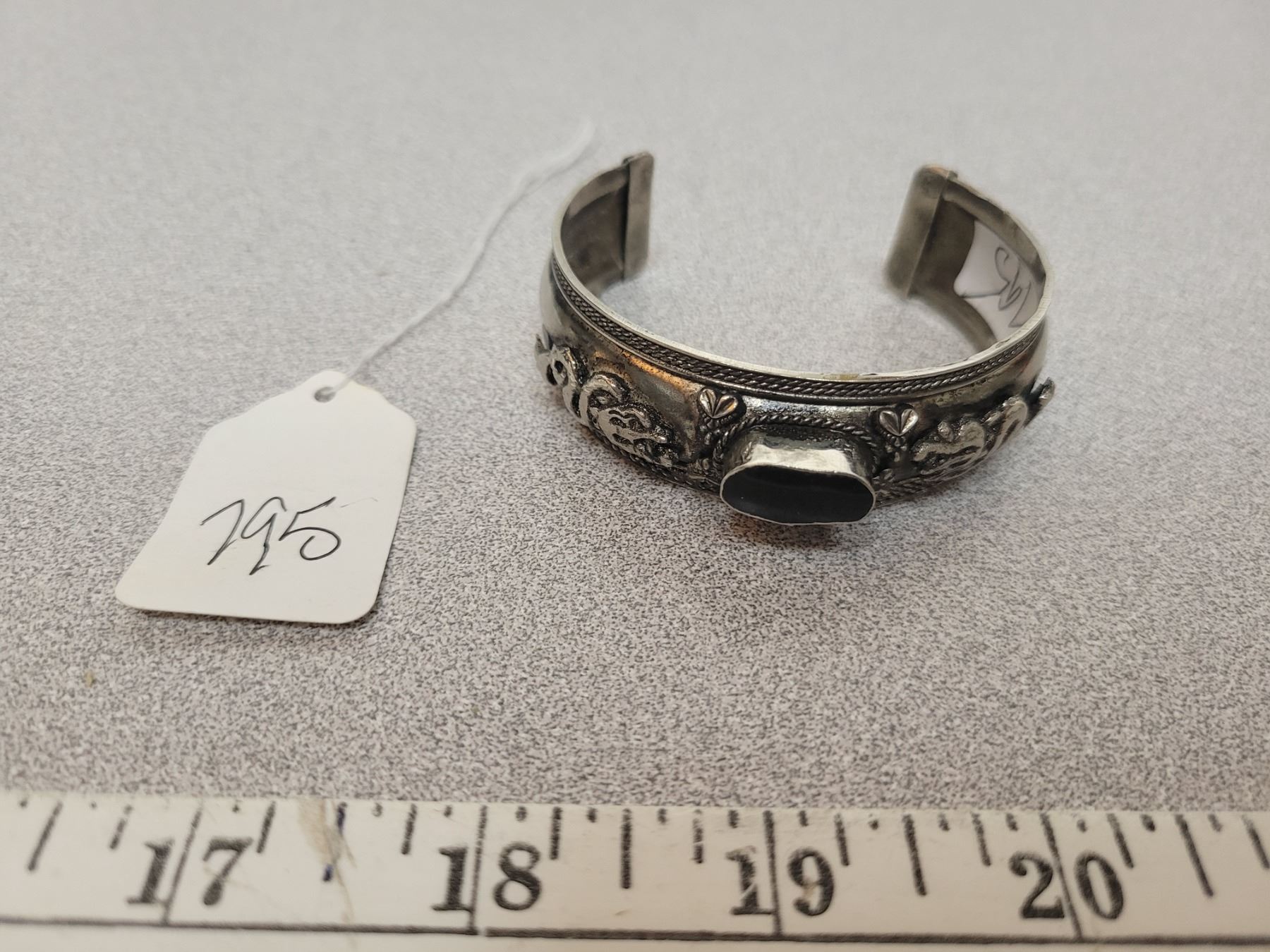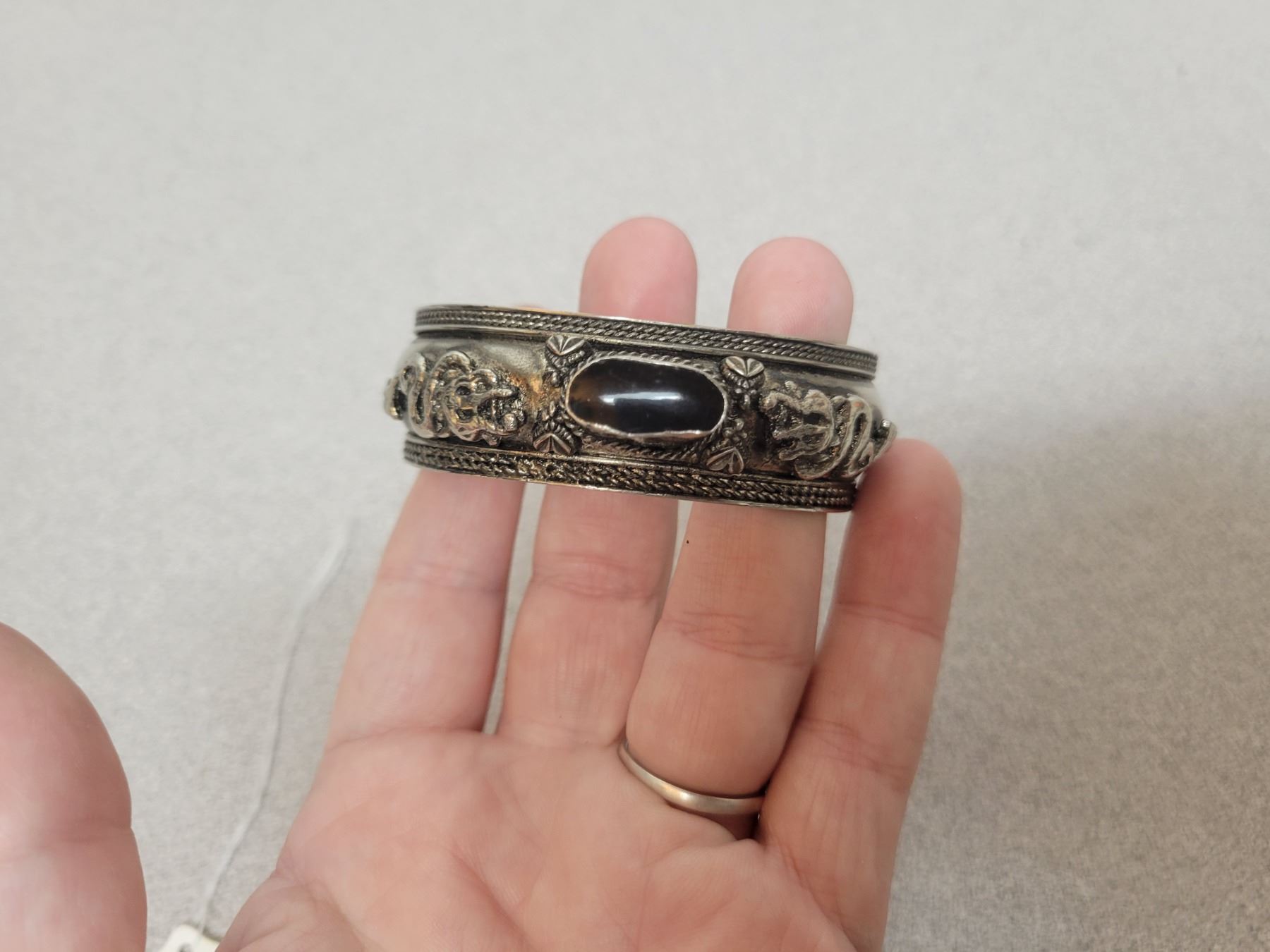 Silver bracelet with dragons and onyx stone