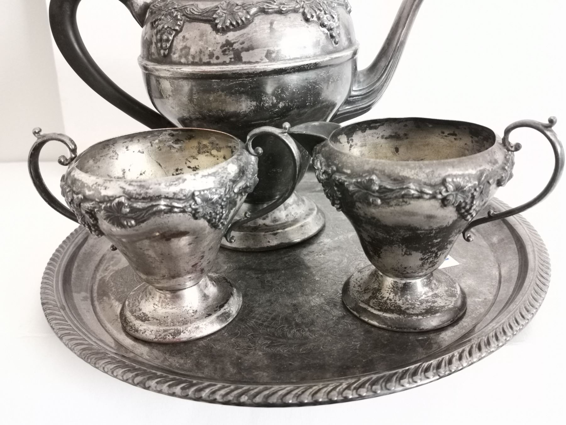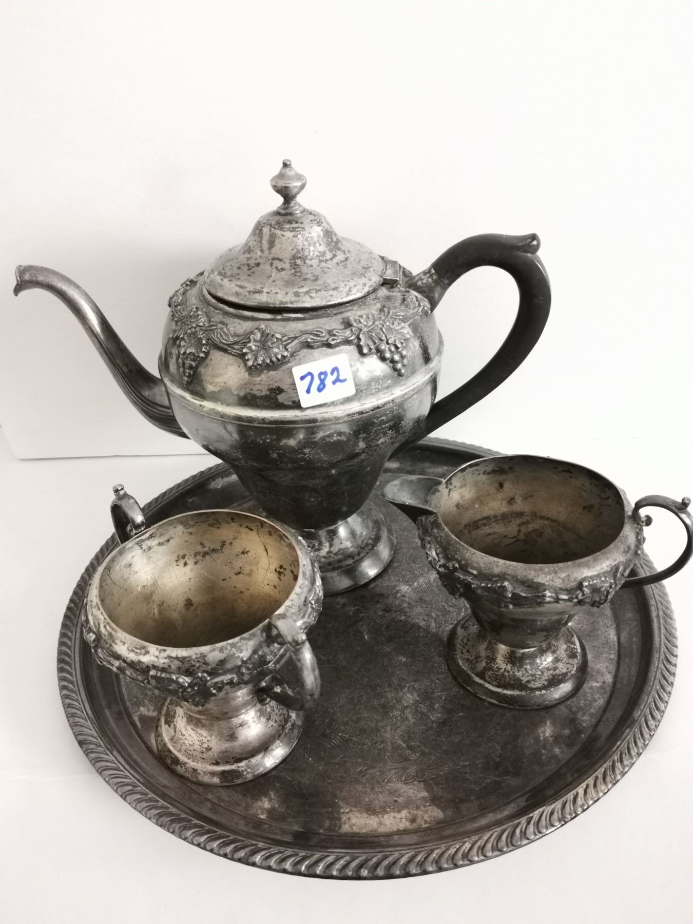 Silver plated - Teapot, cream n sugar bowls, w/ tray