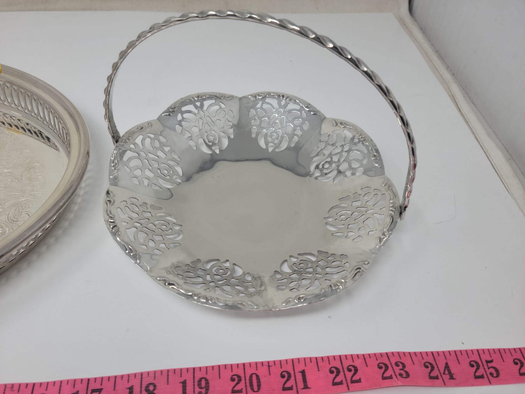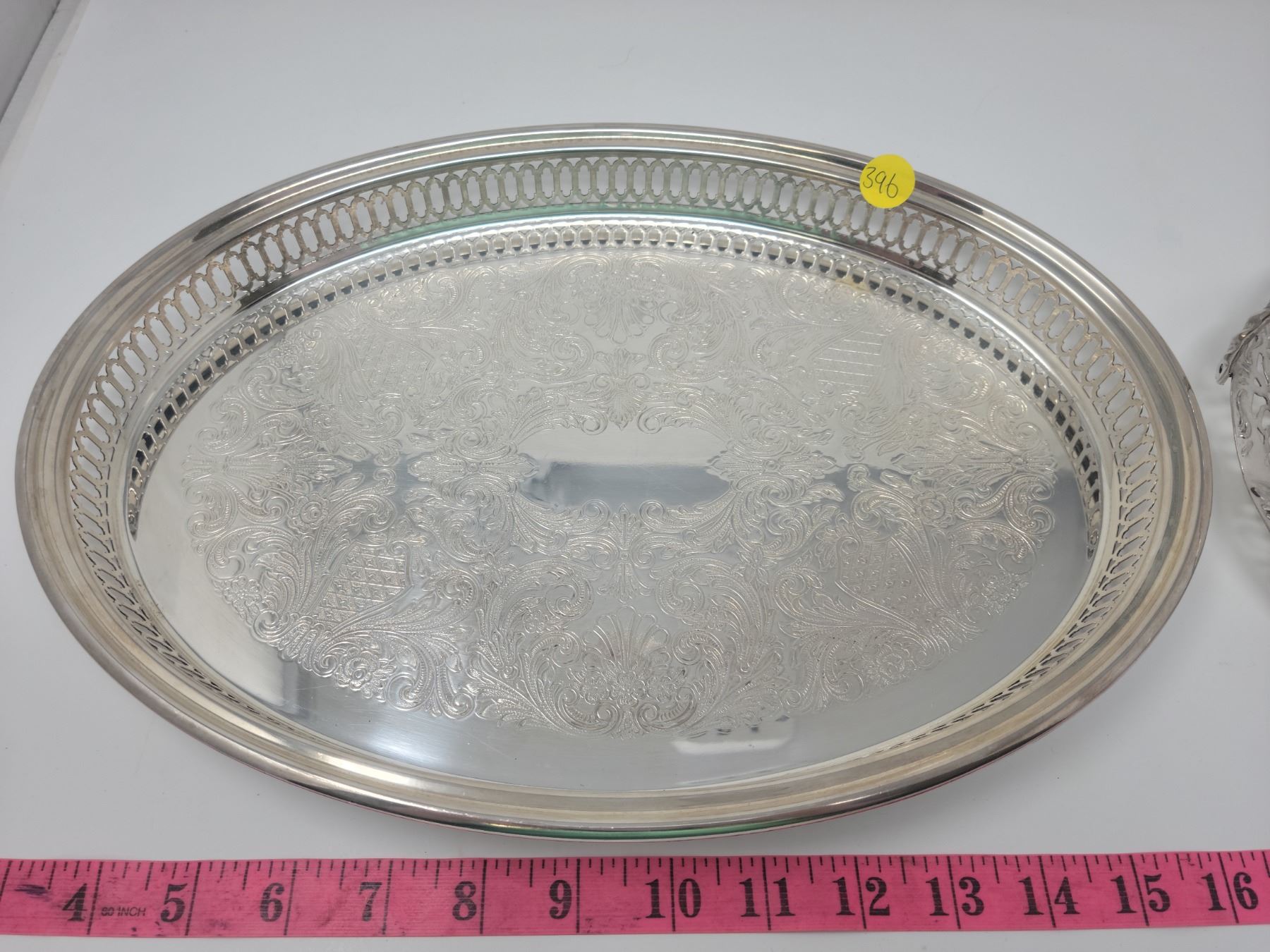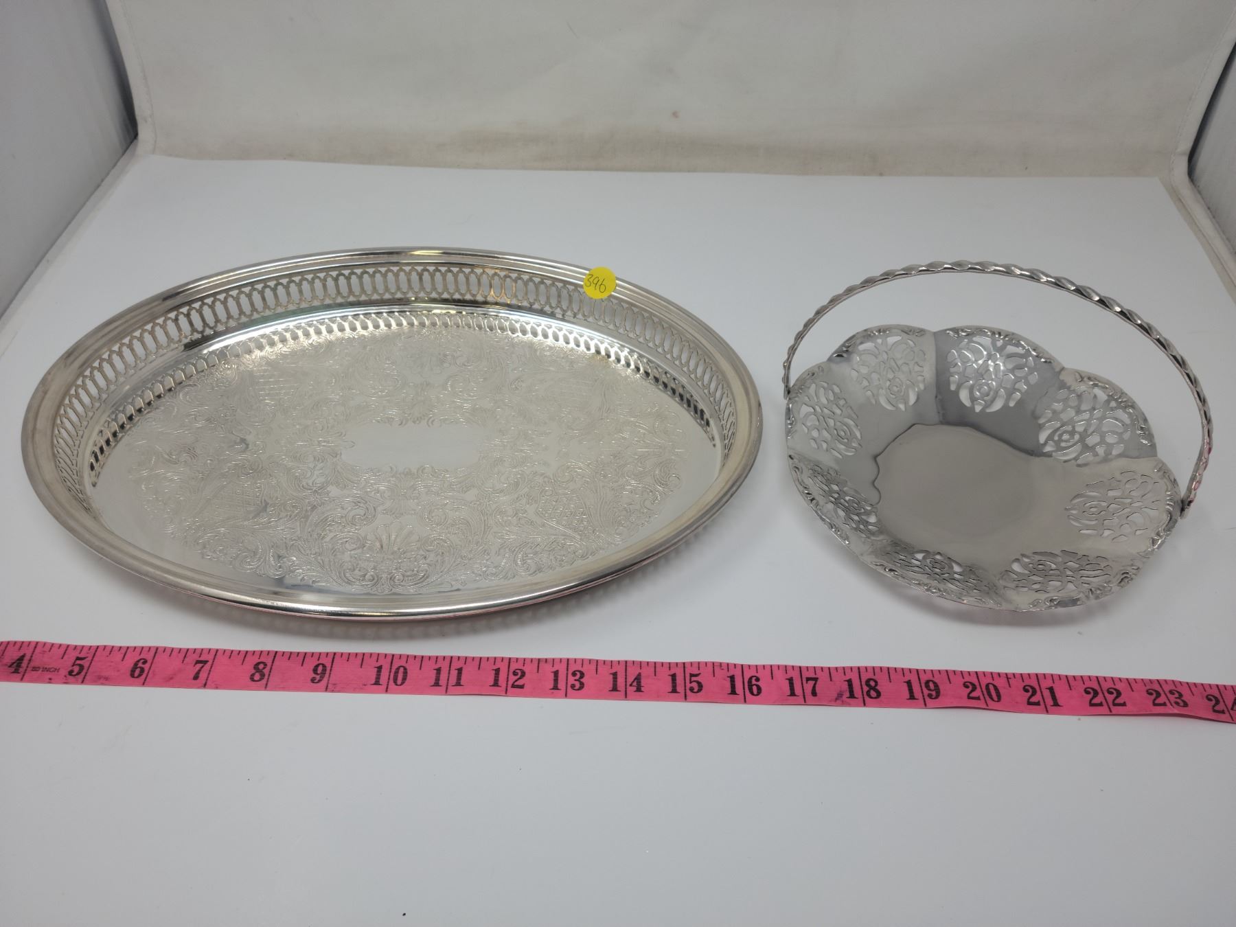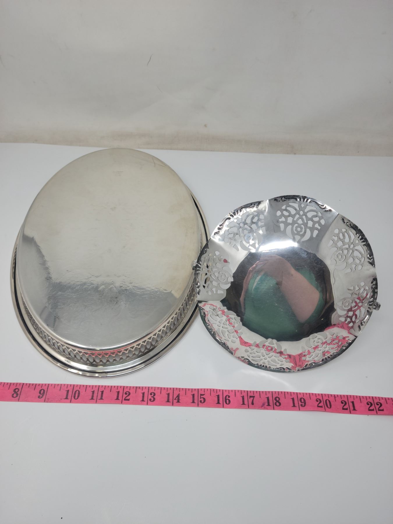 Silverplate tray, Oval 14" long & 1.5" deep- Rogers and silverplate candy dish with handle. 7.5" wide - Hong Kong