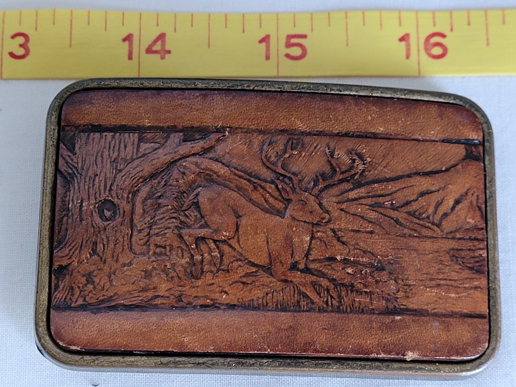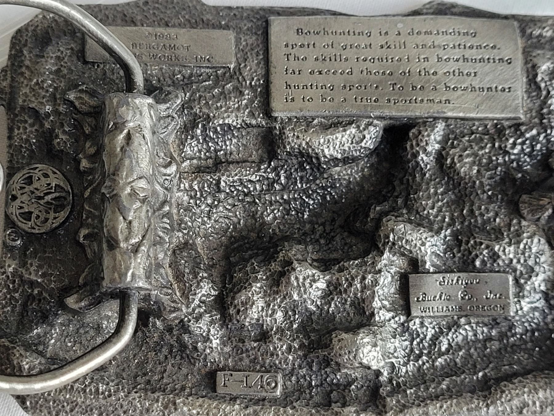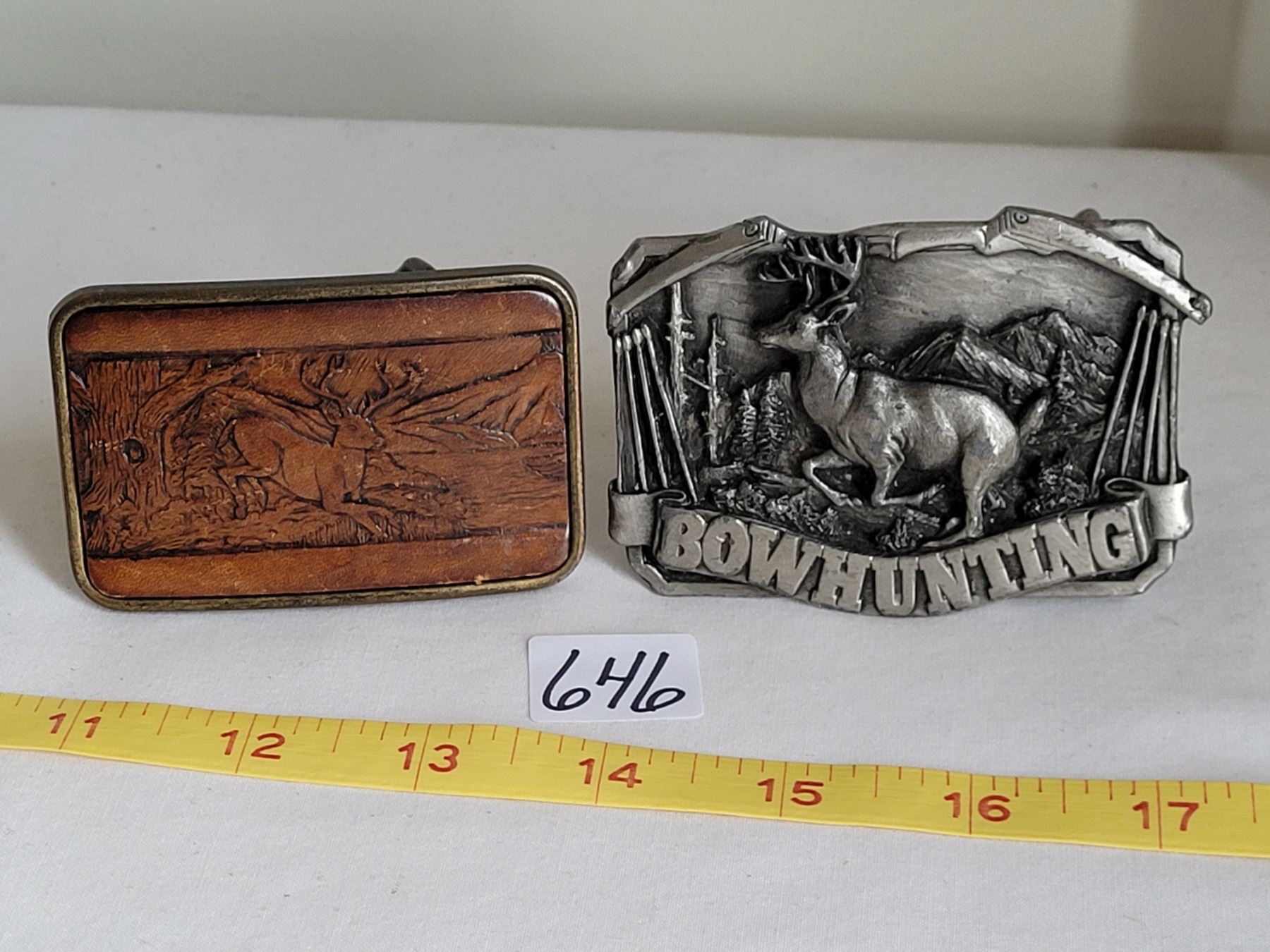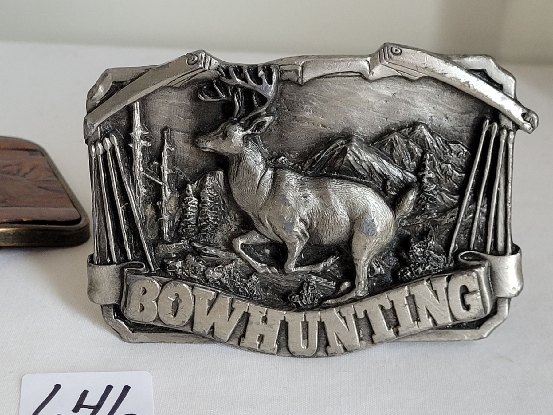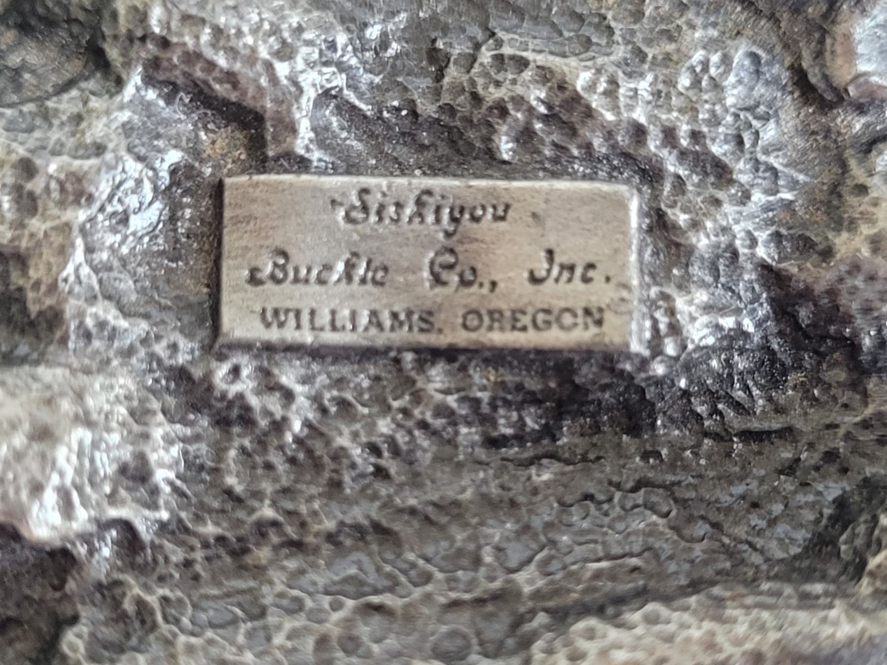Siskiyow Buckle Co. Bow Hunter buckle 1983 & Leather tooled Buck buckle.