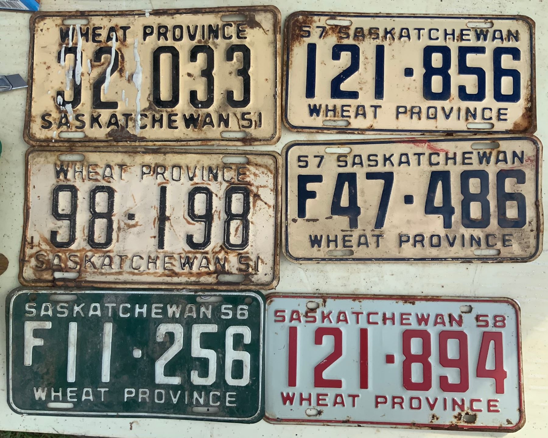 Six License plates 1951, 1956, 1957, 1958