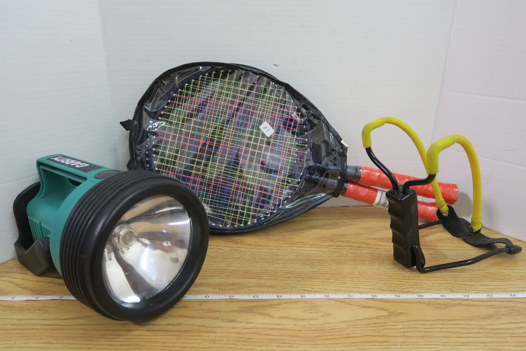 Slingshot, 2 Rackets, and Flashlight