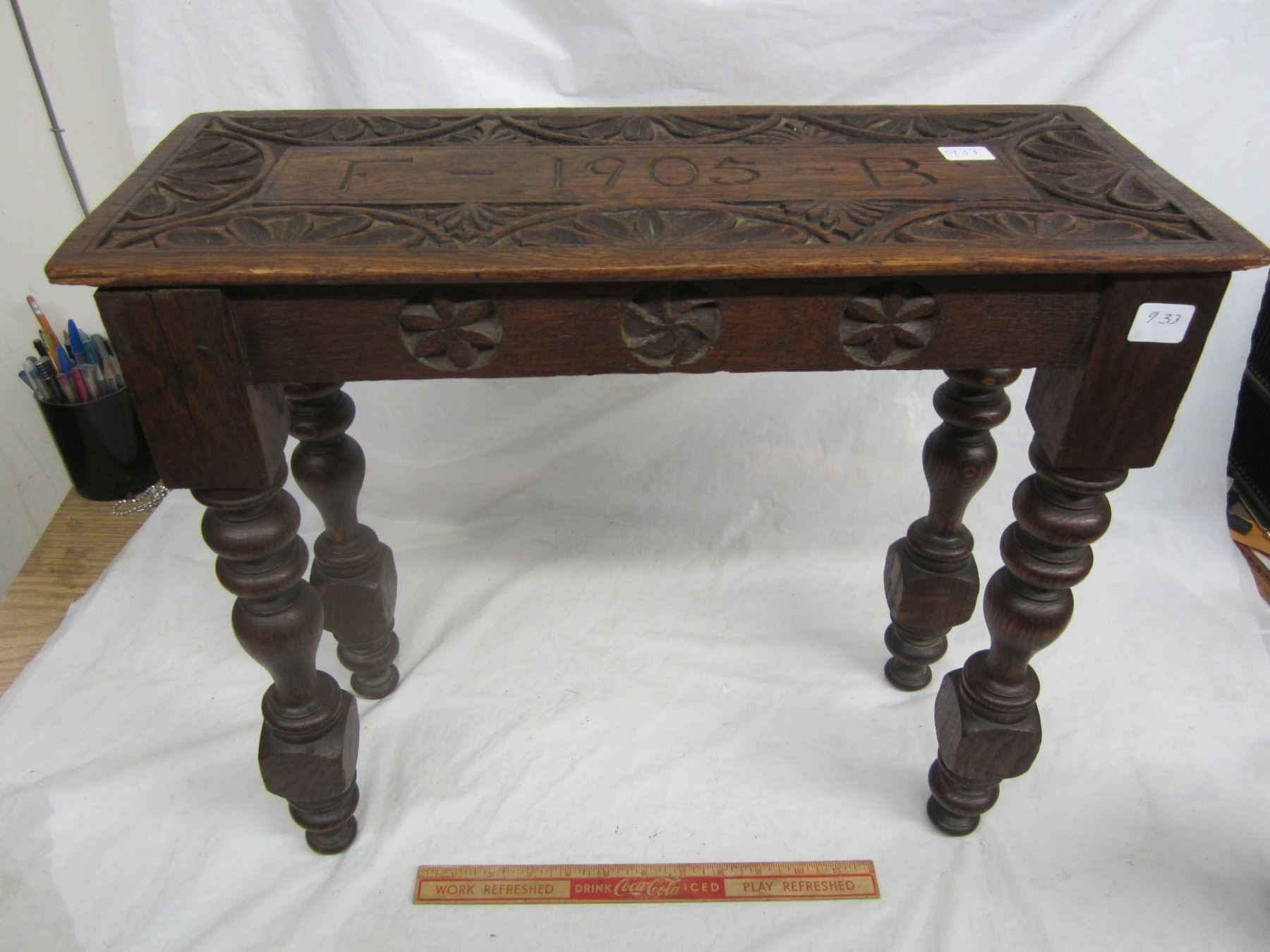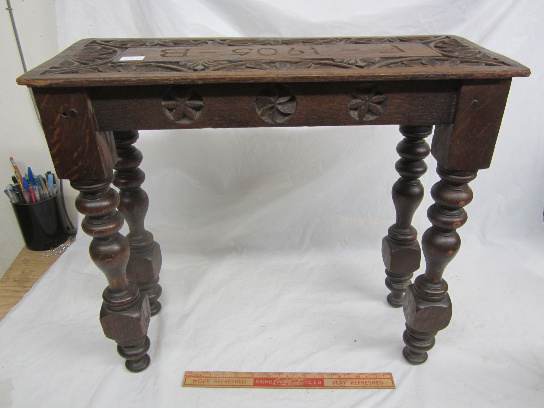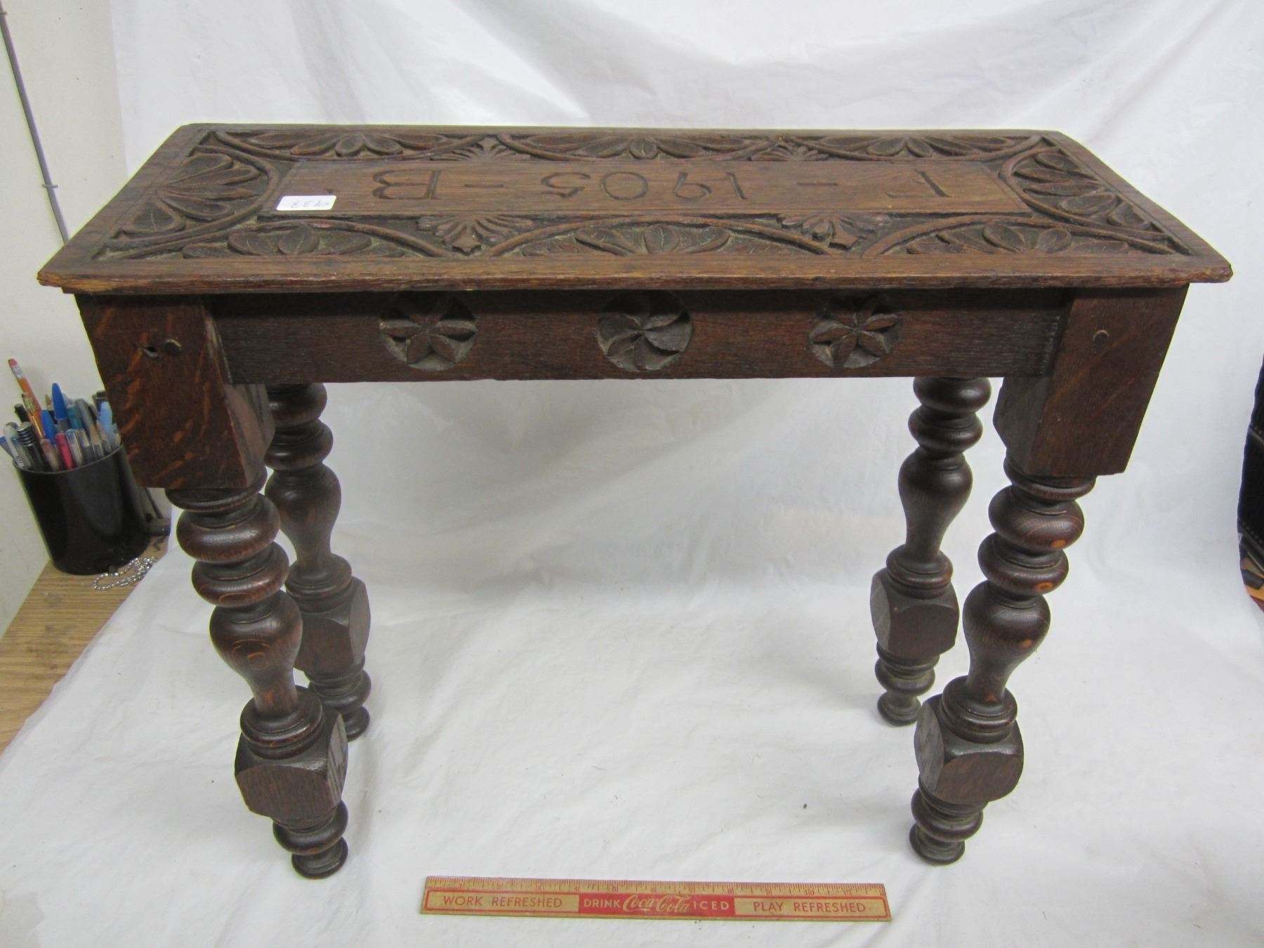 Small Oak Carved Table Carved top 1905