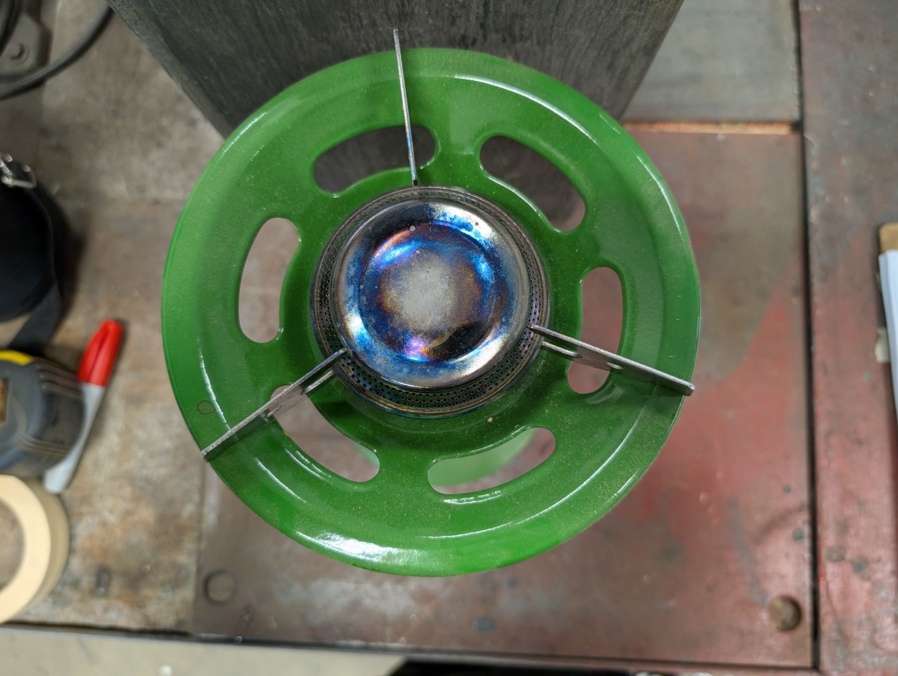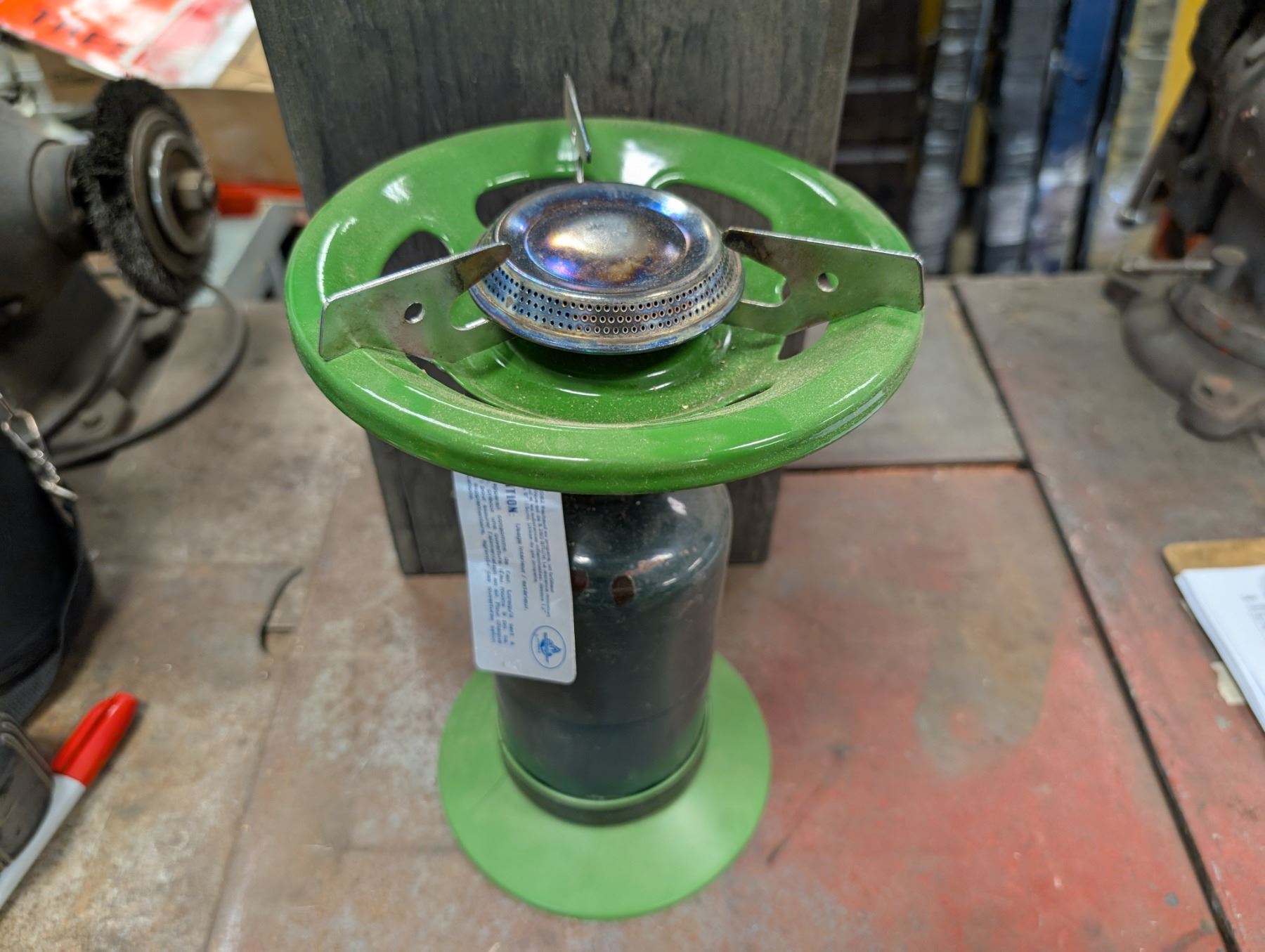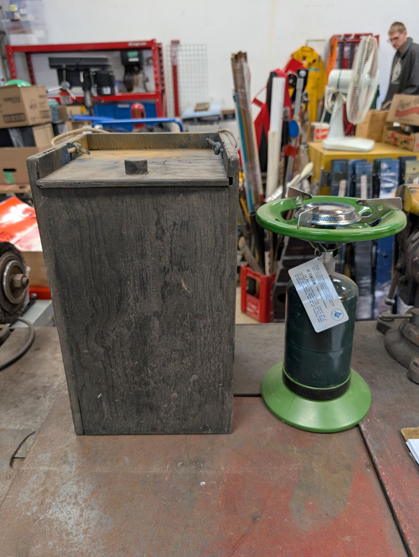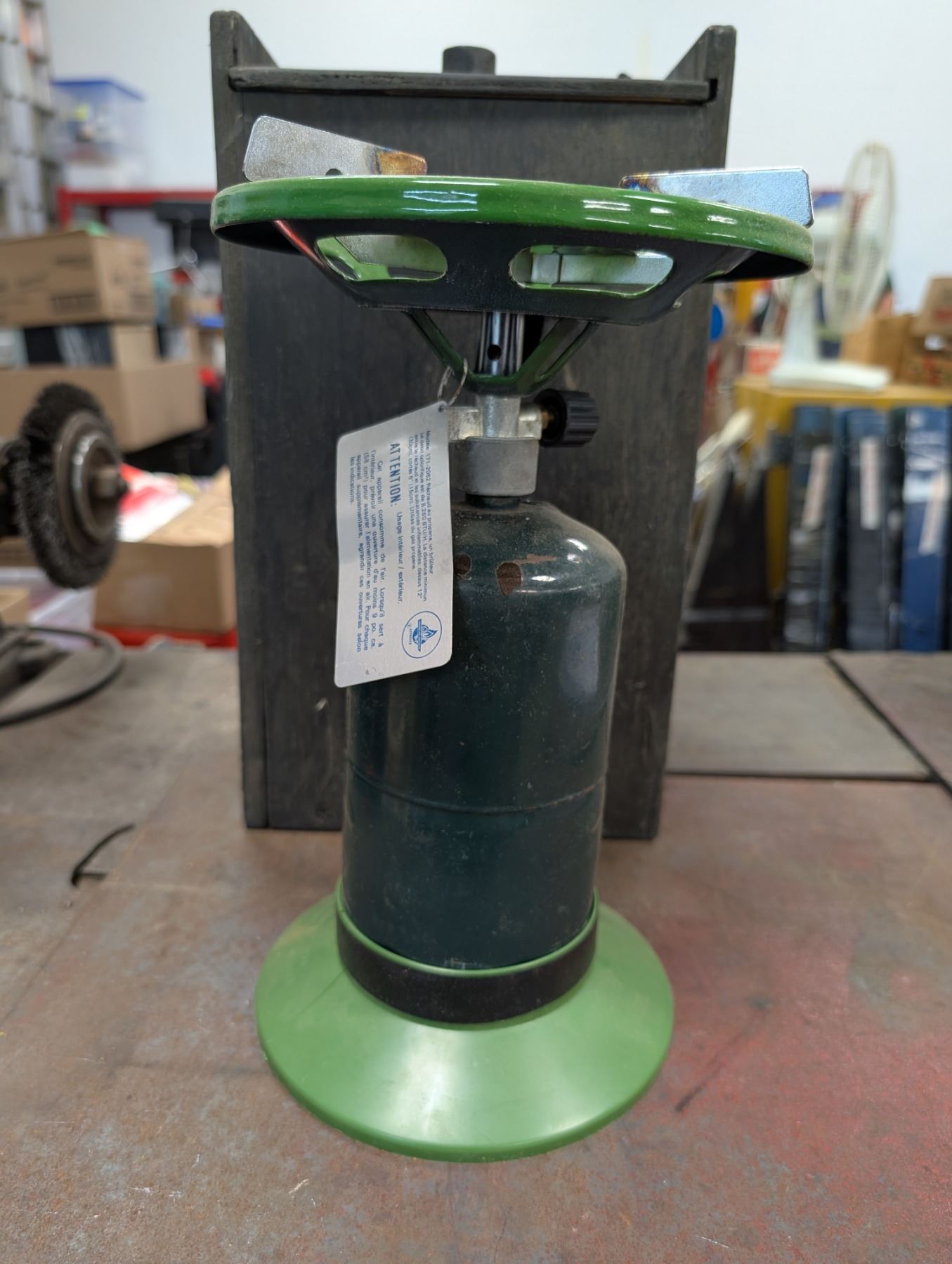 Small Propane Single Burner Stove w/ Plastic base and wood storage unit