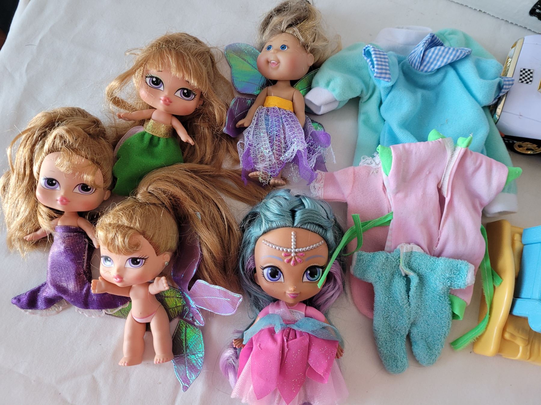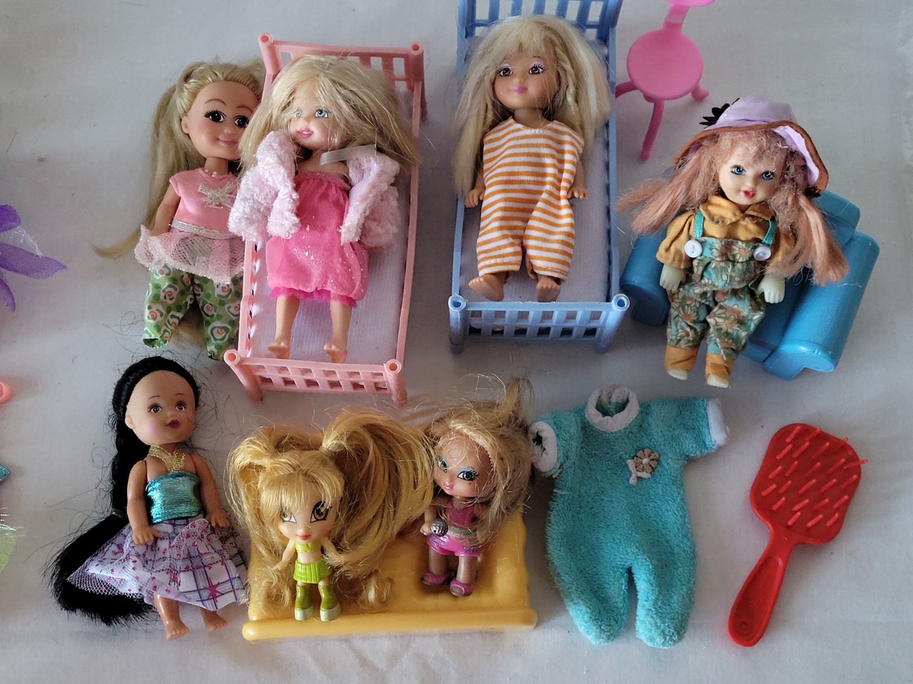 Small dolls & accessories. Includes Littlest Pet shop Petit Blythe dolls & Shimmer & Shine Princess Samera by Fisher Price.