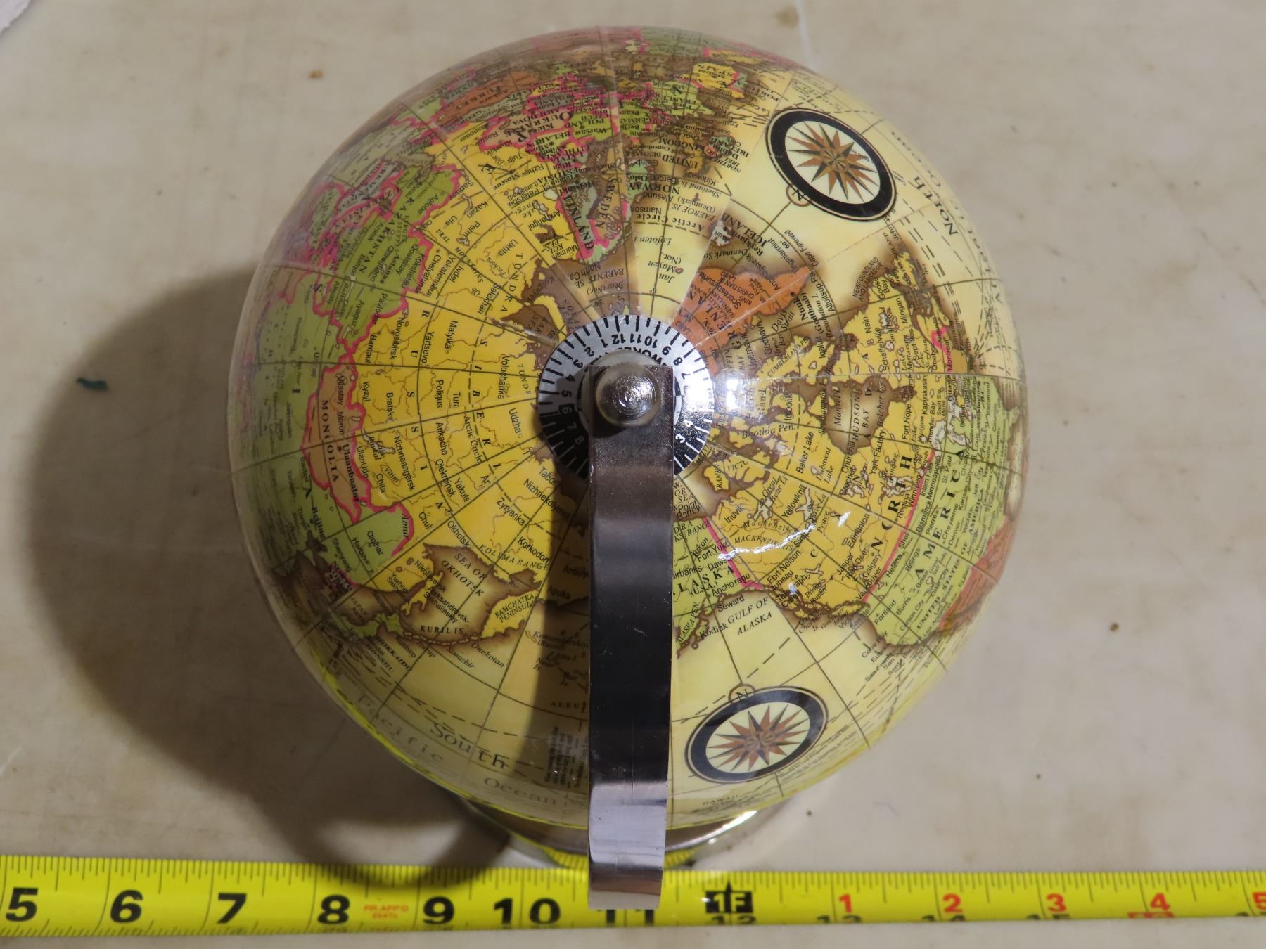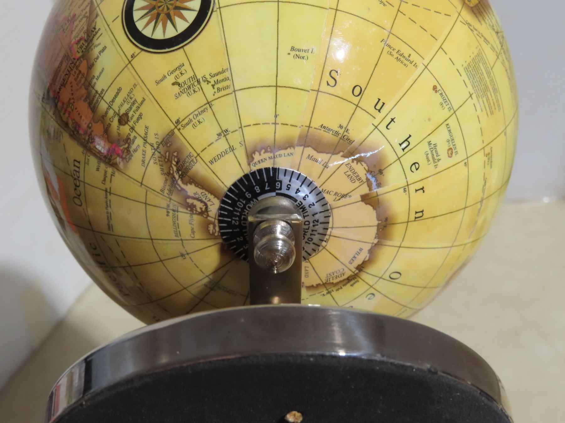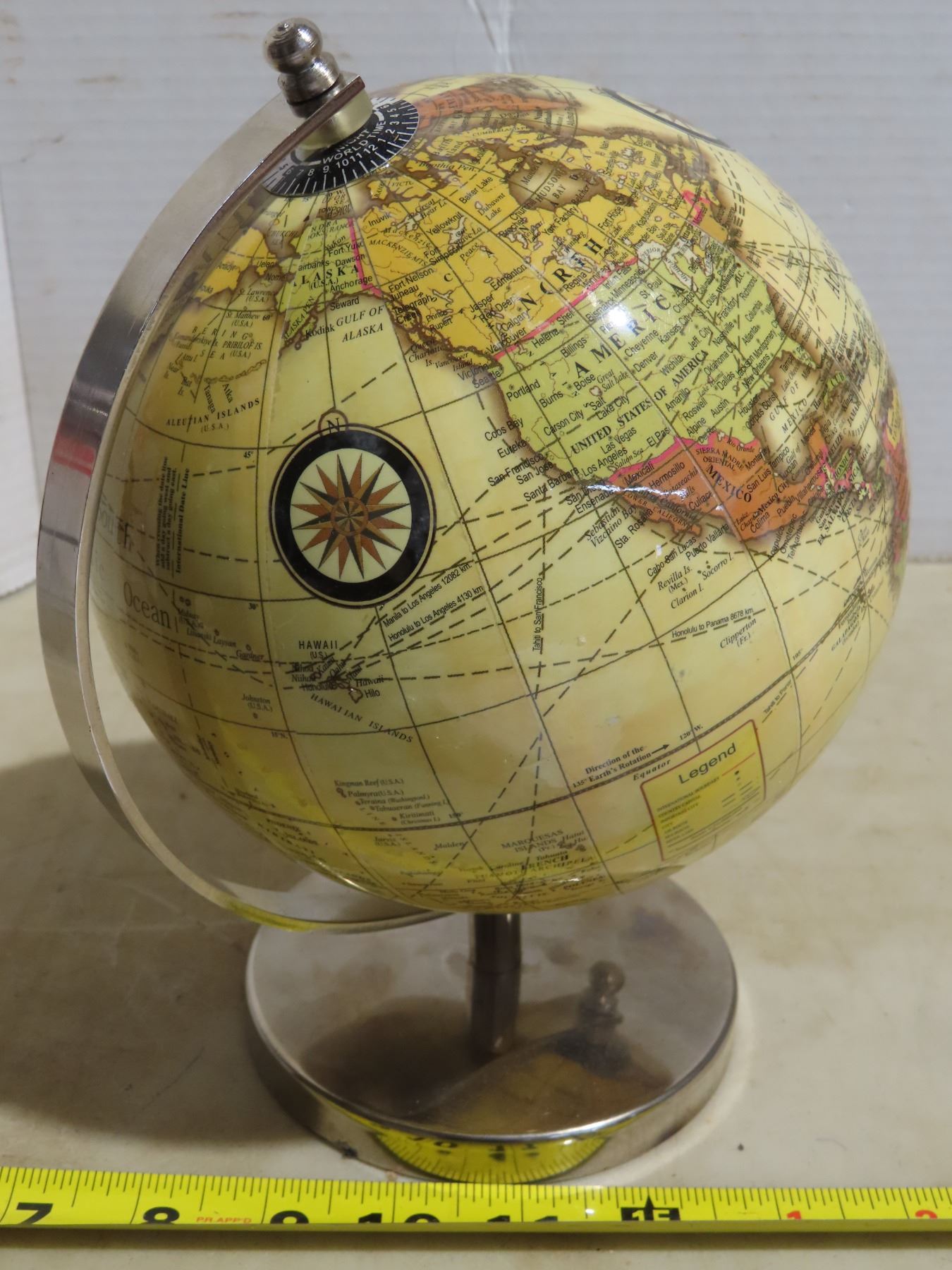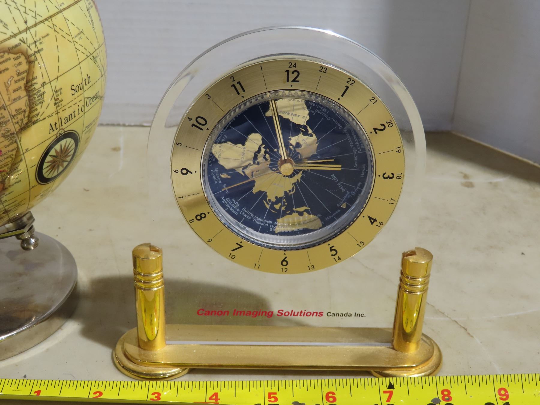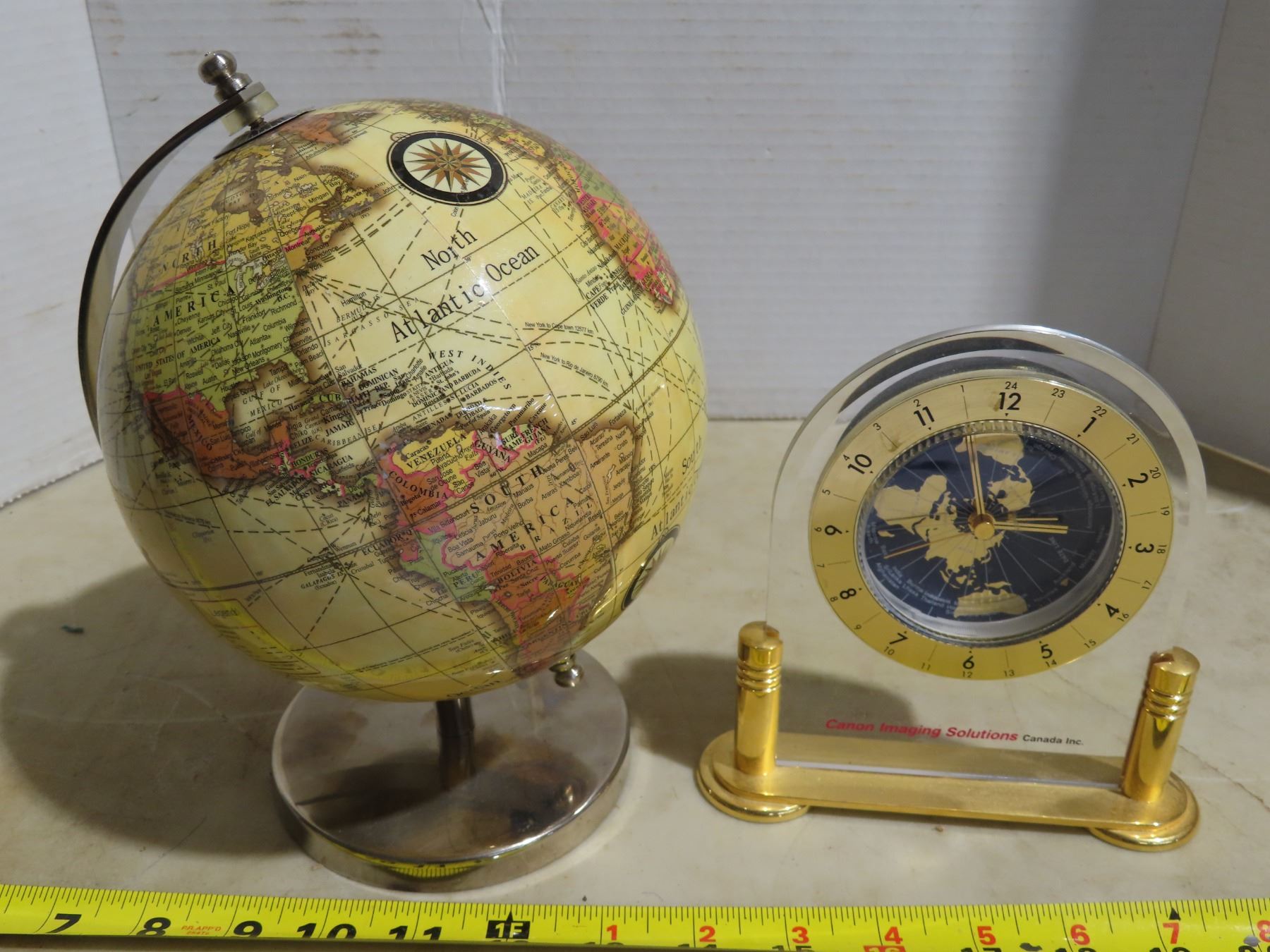 Small spinning world globe & World clock- perfect for any collector