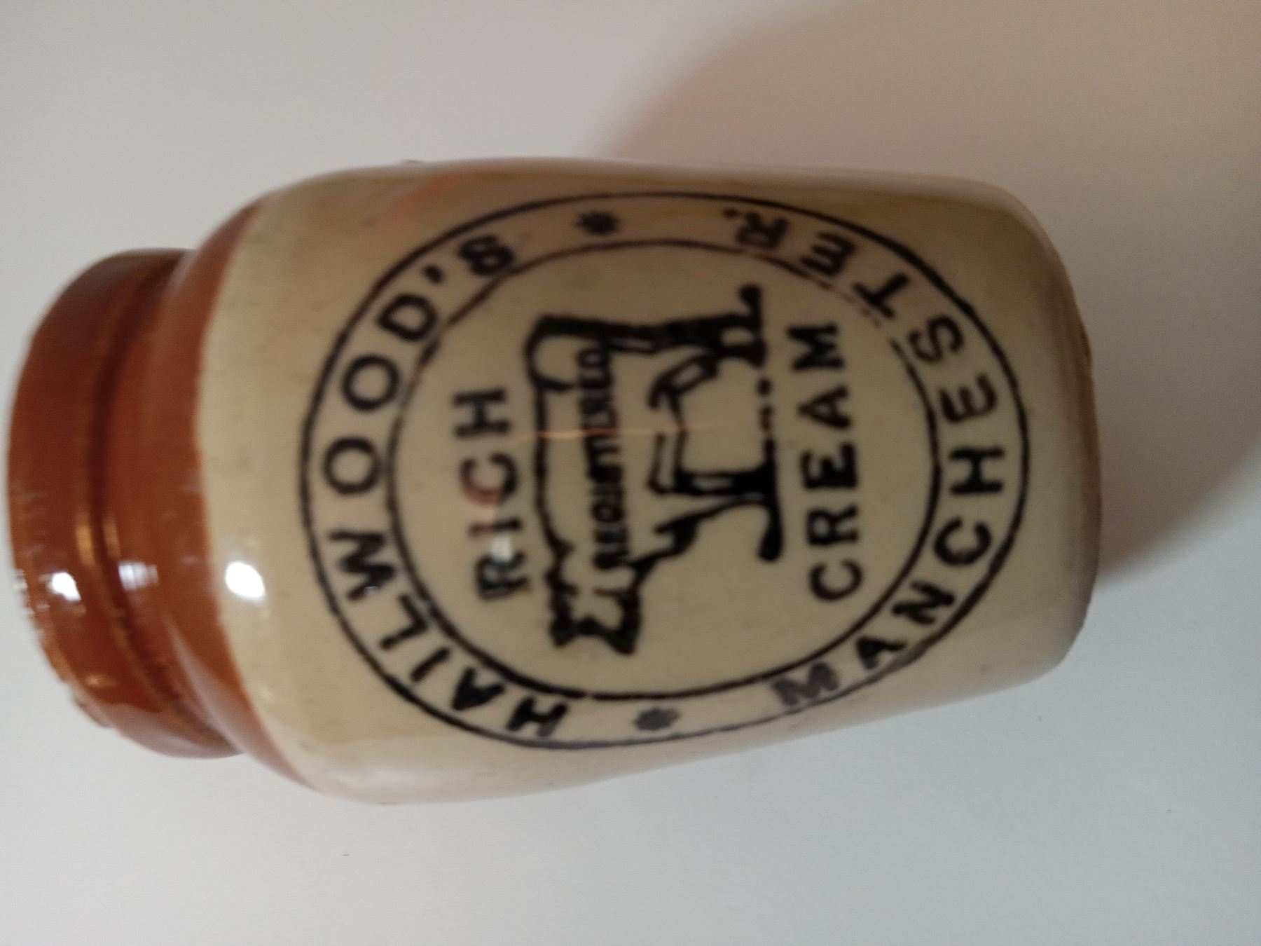 Small tan and brown barrel - Hailwood's Rich Cream
