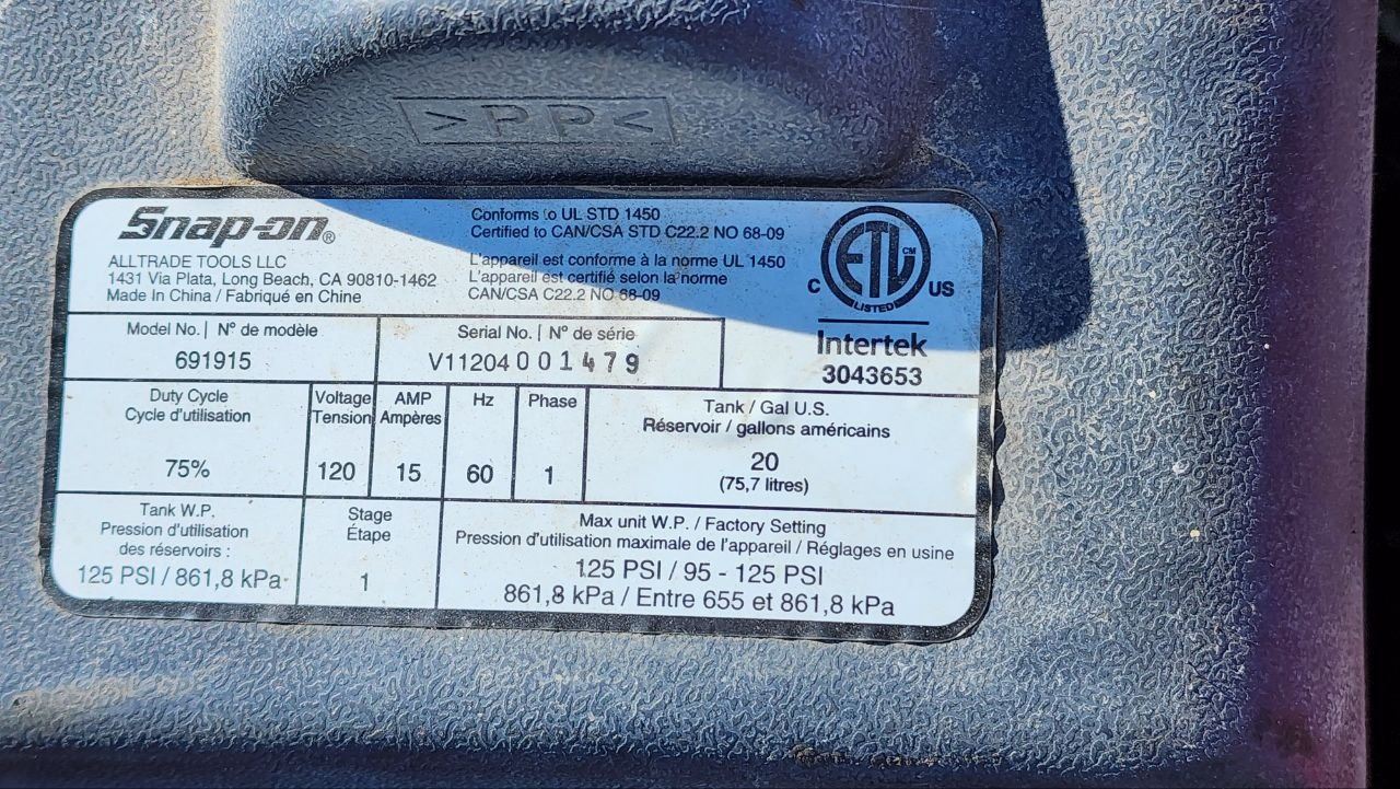 "Snap On" Shop Air Compressor