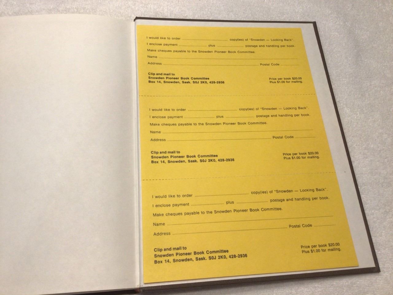 Snowden Saskatchewan, Looking Back history book, printed in 1979, 215 pages