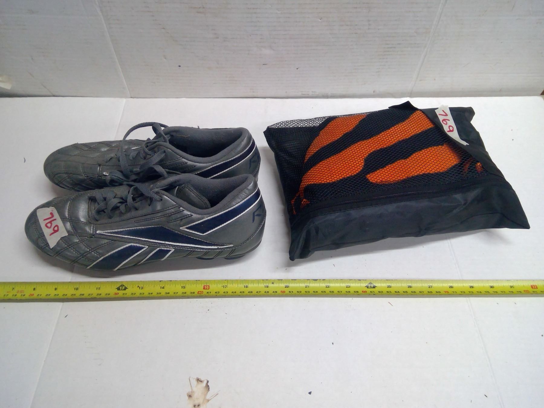 Soccer Shoes (Men's Size 11) and Tiger Print Towel