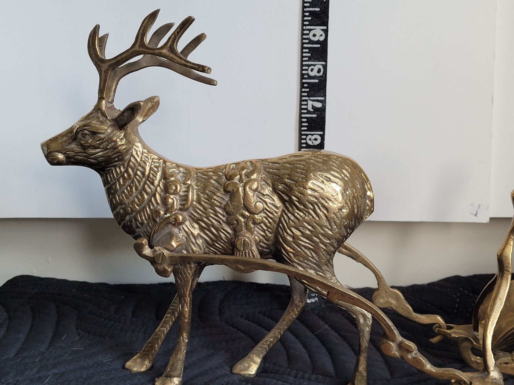 Solid Brass Reindeer and Sleigh. Sled detaches.
