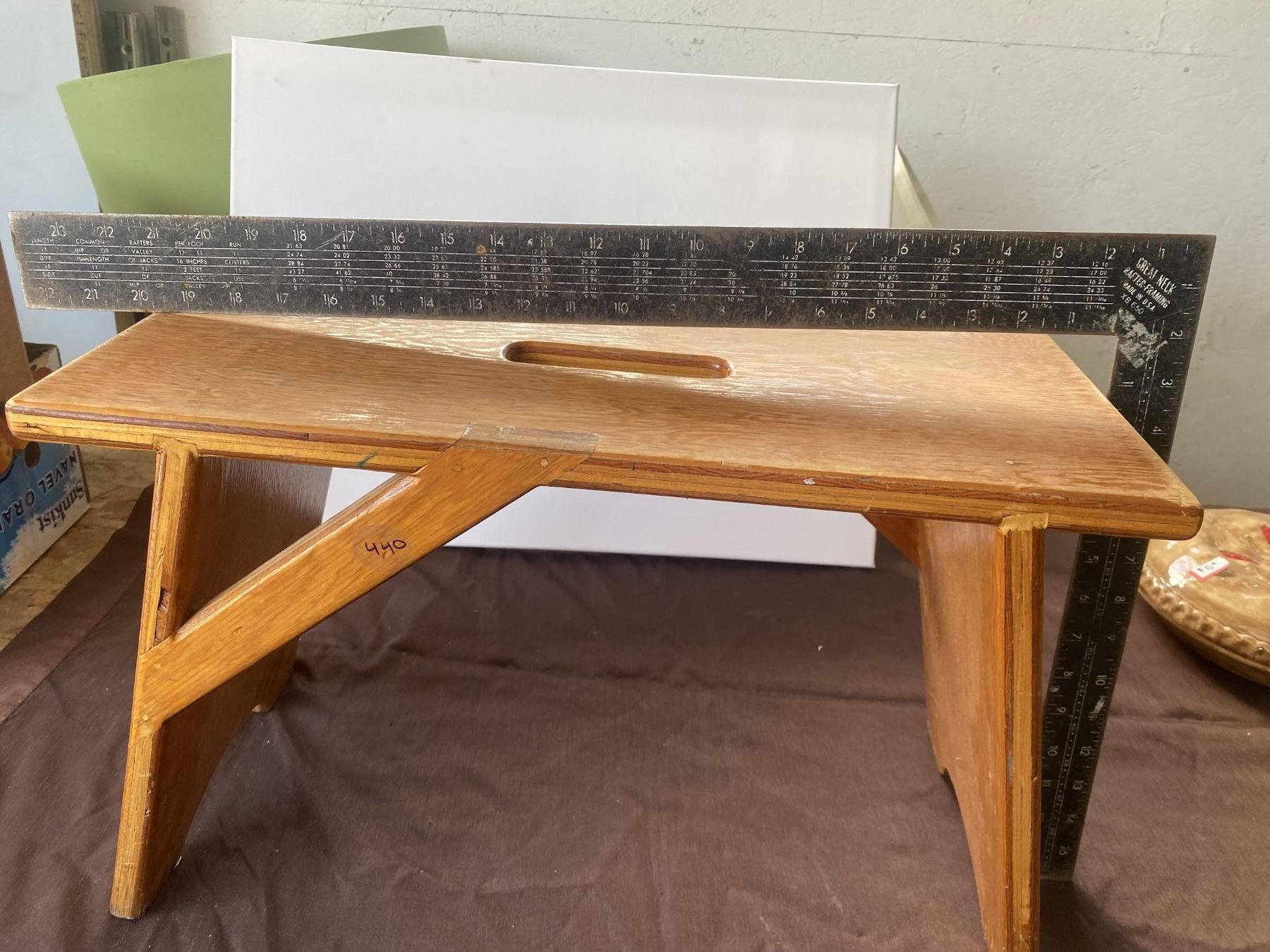 Solid, handmade, vintage, wooden, sturdy stool.