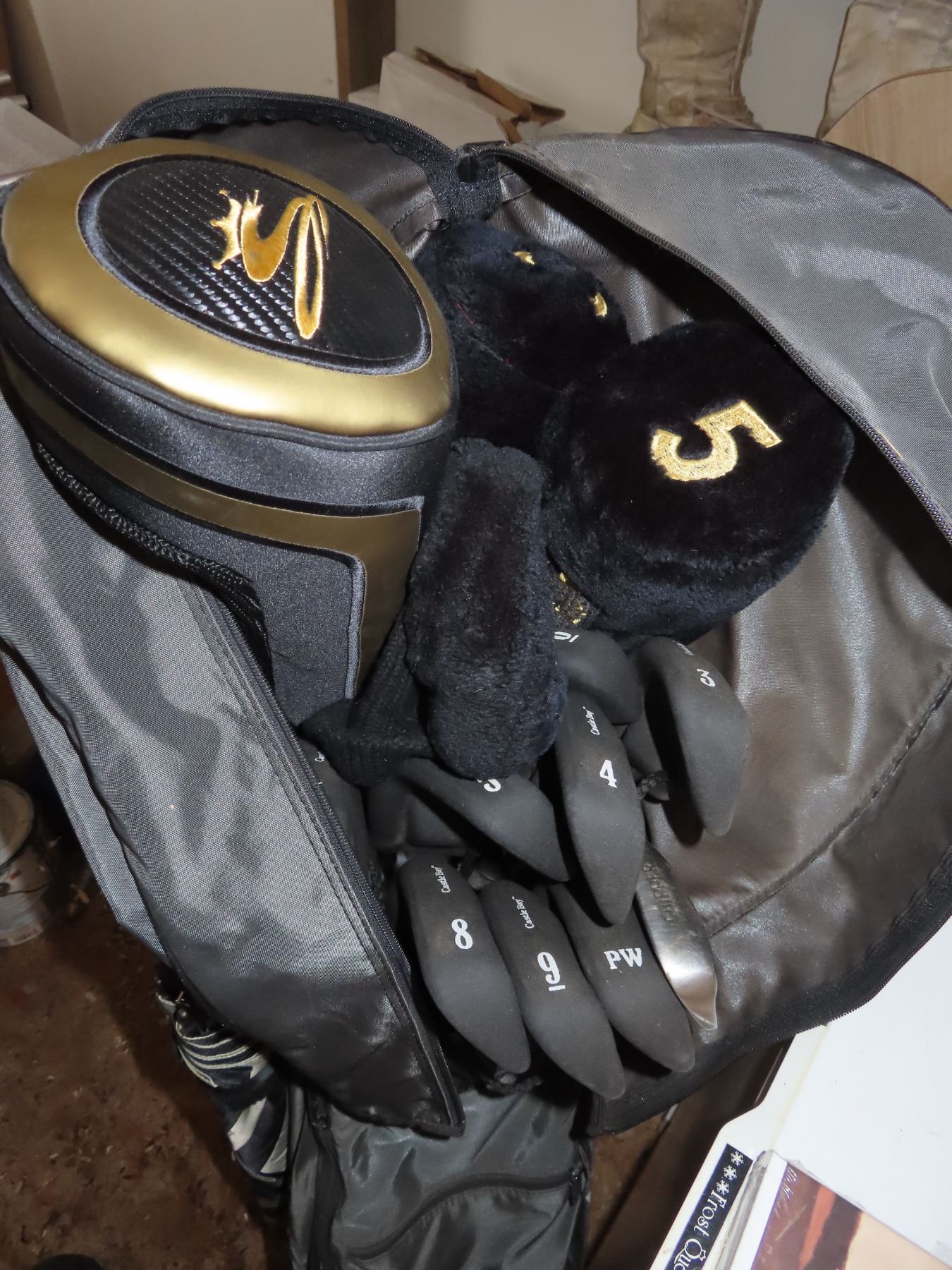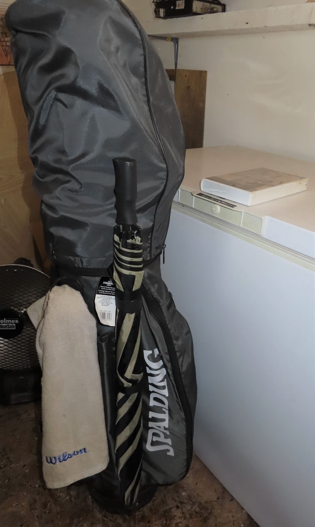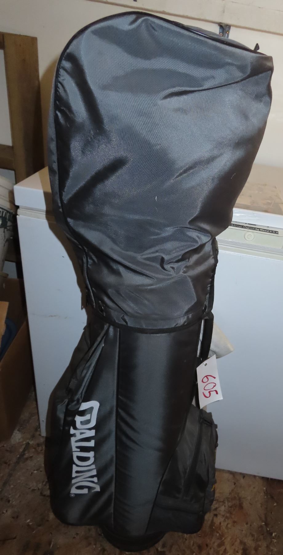 Spalding golf bag with golf clubs and accessories