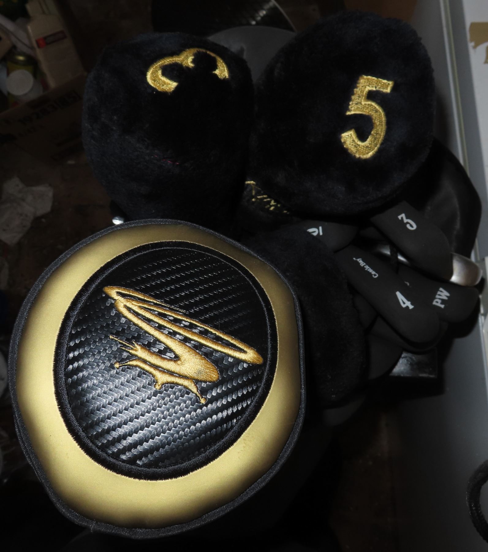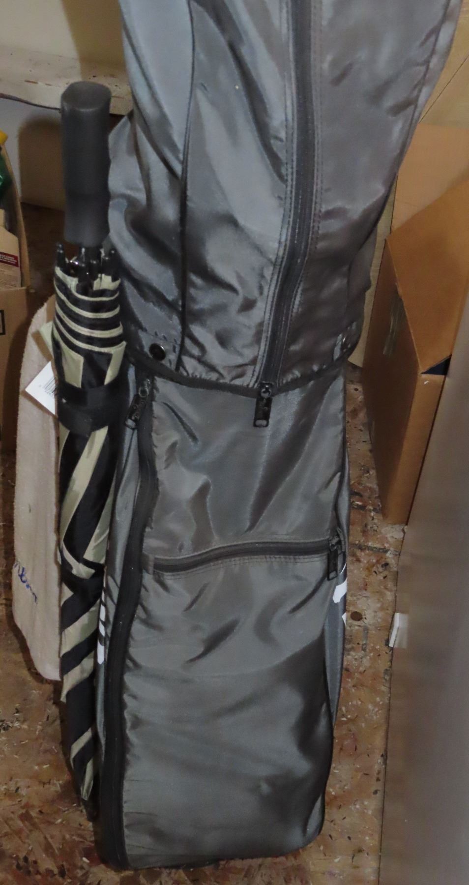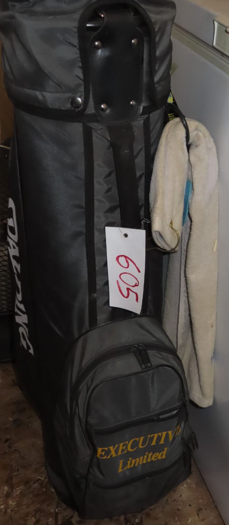 Spalding golf bag with golf clubs and accessories