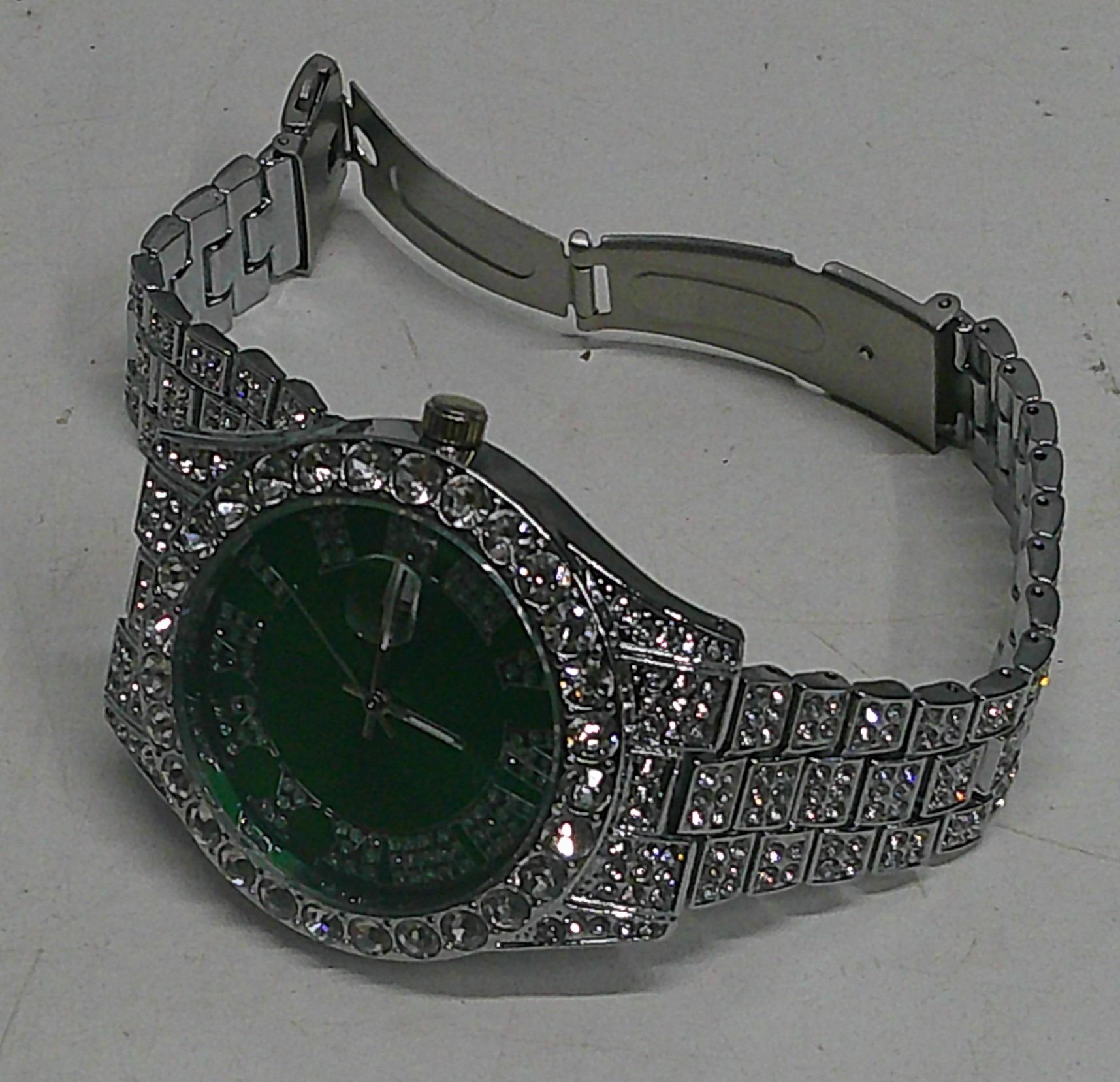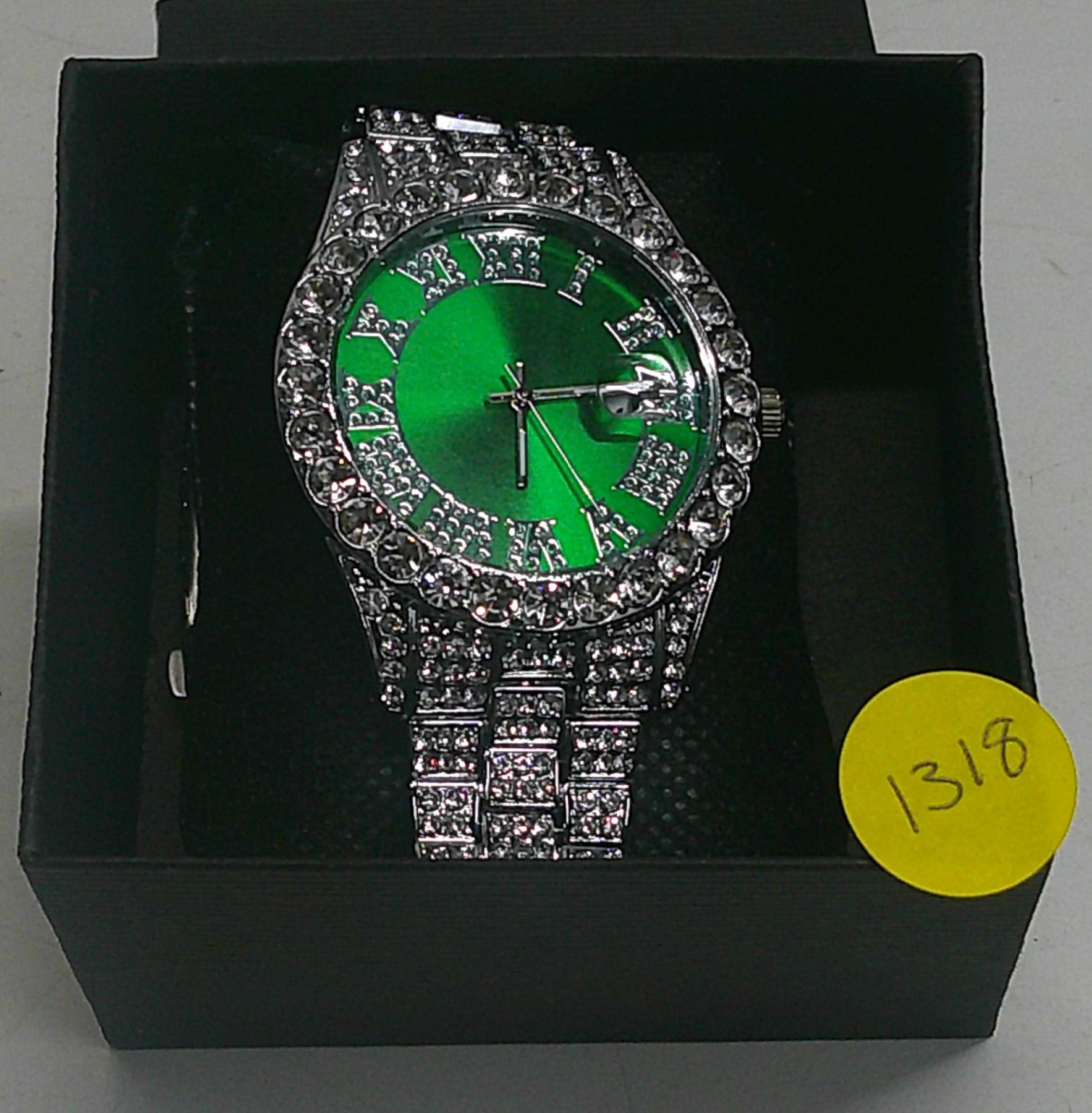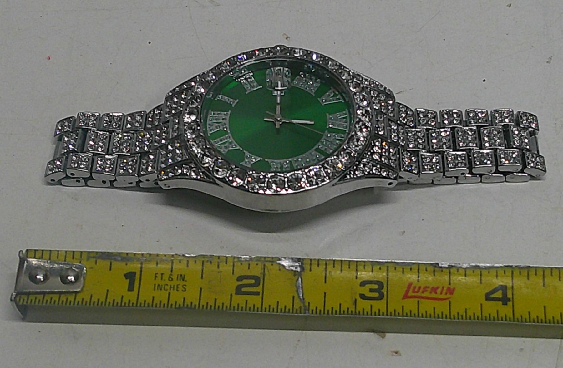 Sparkly Roman numeral green watch
