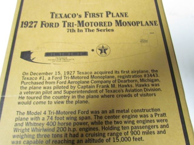 Special 1999 Collectors Edition Texacos first plane 1927 Ford Tri-Motored Monoplane 7th in the series die cast metal coin bank