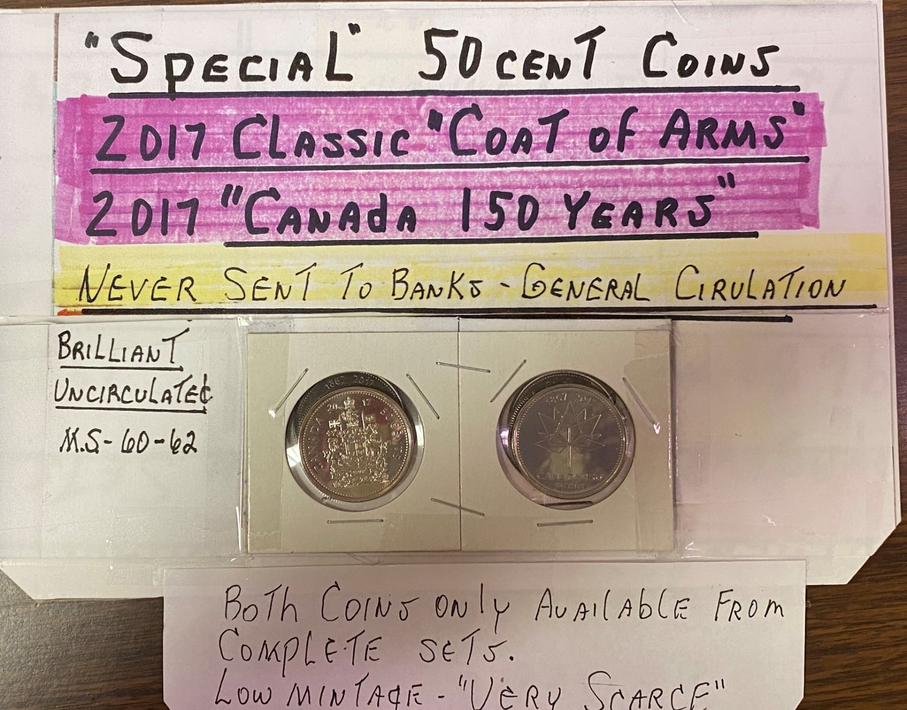 Special 50 Cent Coins- 2017 Classic "Coat of Arms" 2017 Canada 150 Years"