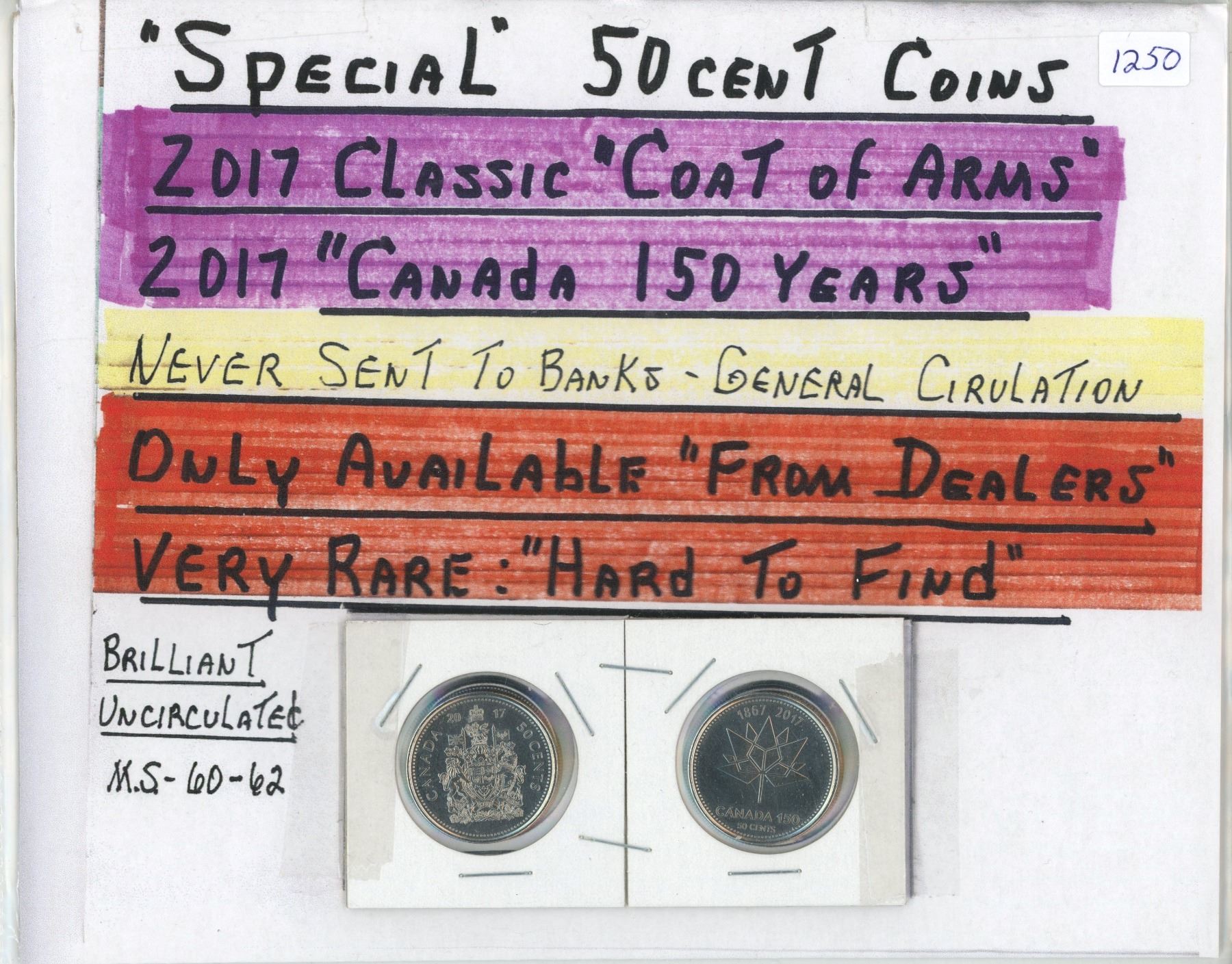 Special 50¢ Coins; 2017 Coat of Arms and 2017 Canada 150 Years