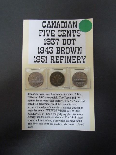 Special Canadian 5cent-1937 dot,1943 brown Victory,1951 Refinery